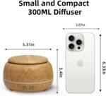 300ML Essential Oil Diffuser, Ultrasonic Aromatherapy Diffuser with Remote, 7 Color Lights, Timer, Auto-Off, for Bedroom, Home, Small Room, Yoga, Gift for Women(Light Wood)