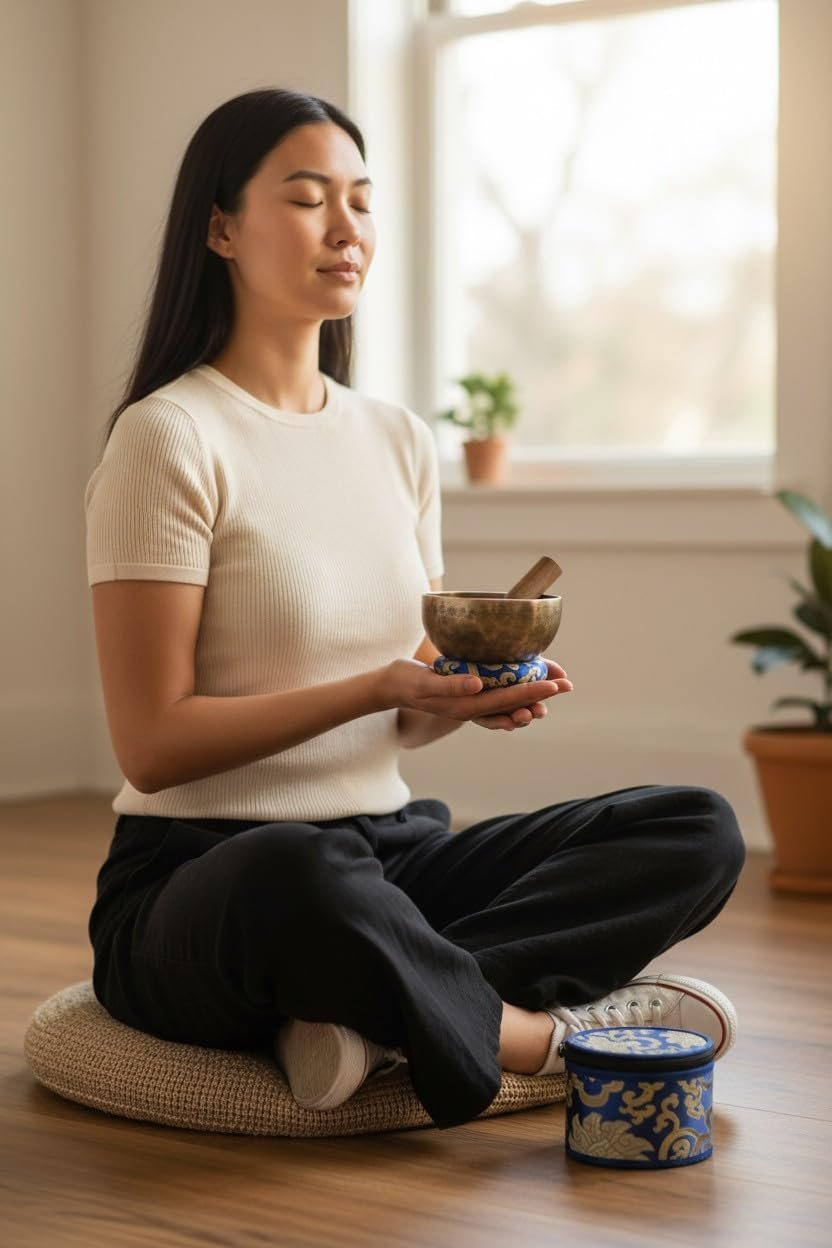 Tags: Antic, Bowl, Case, Cushion, Gift, Handmade, Healing, Holiday, inch, Includes, Mallet, Meditation, meditation speaker, Mindfulness, Nepal, relaxation audio tool, Set, Singing, soothing music cushion, Sound, Tiger, Wooden, Yoga, yoga music mat, yoga sound device