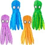 4 Pack Squeaky Dog Toys – Octopus Plush Dog Toys for Aggressive Chewers, No Stuffing, Crinkle, Durable Interactive, 4 Colors