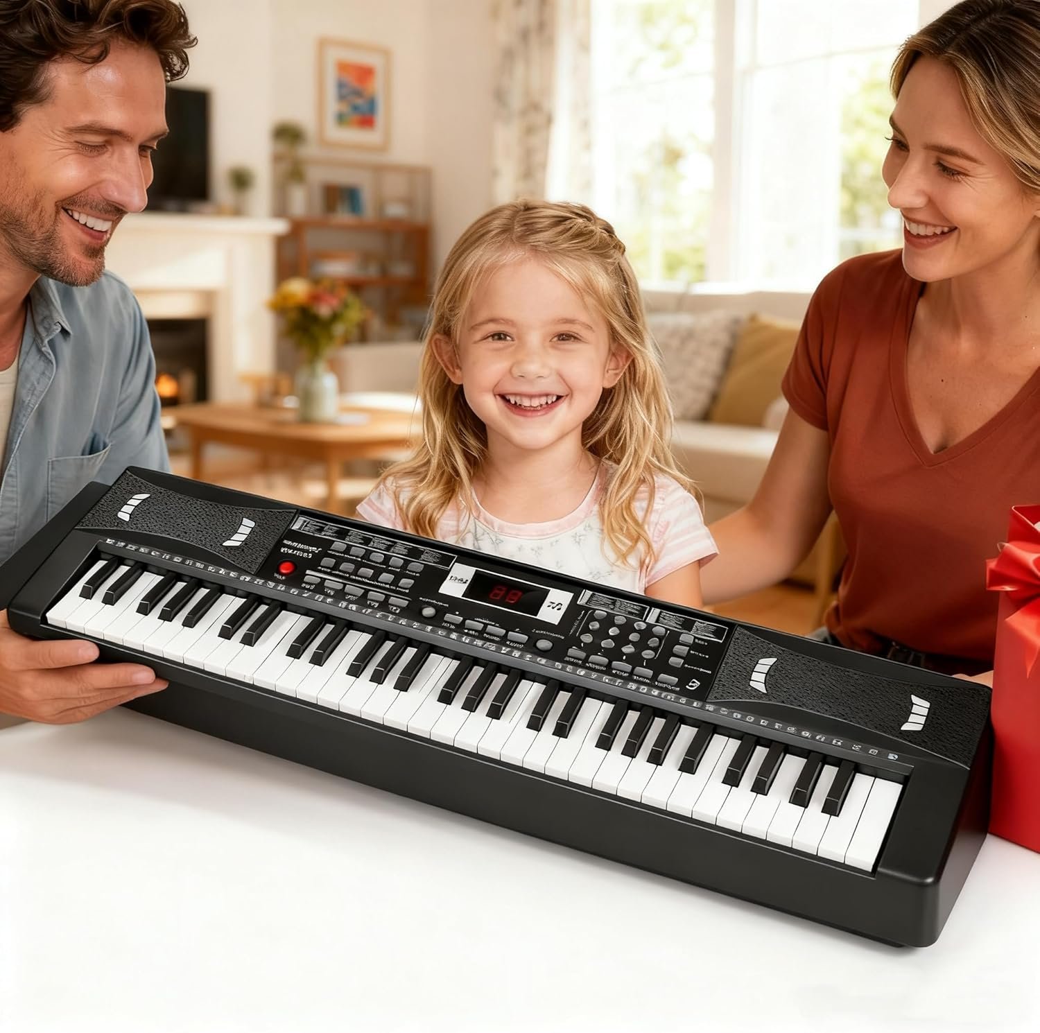 61 Key Keyboard Piano, Portable Electronic Keyboard Piano for Beginners with Speakers, Microphone, Sheet Music Stand, Digital Music Keyboard for Beginners