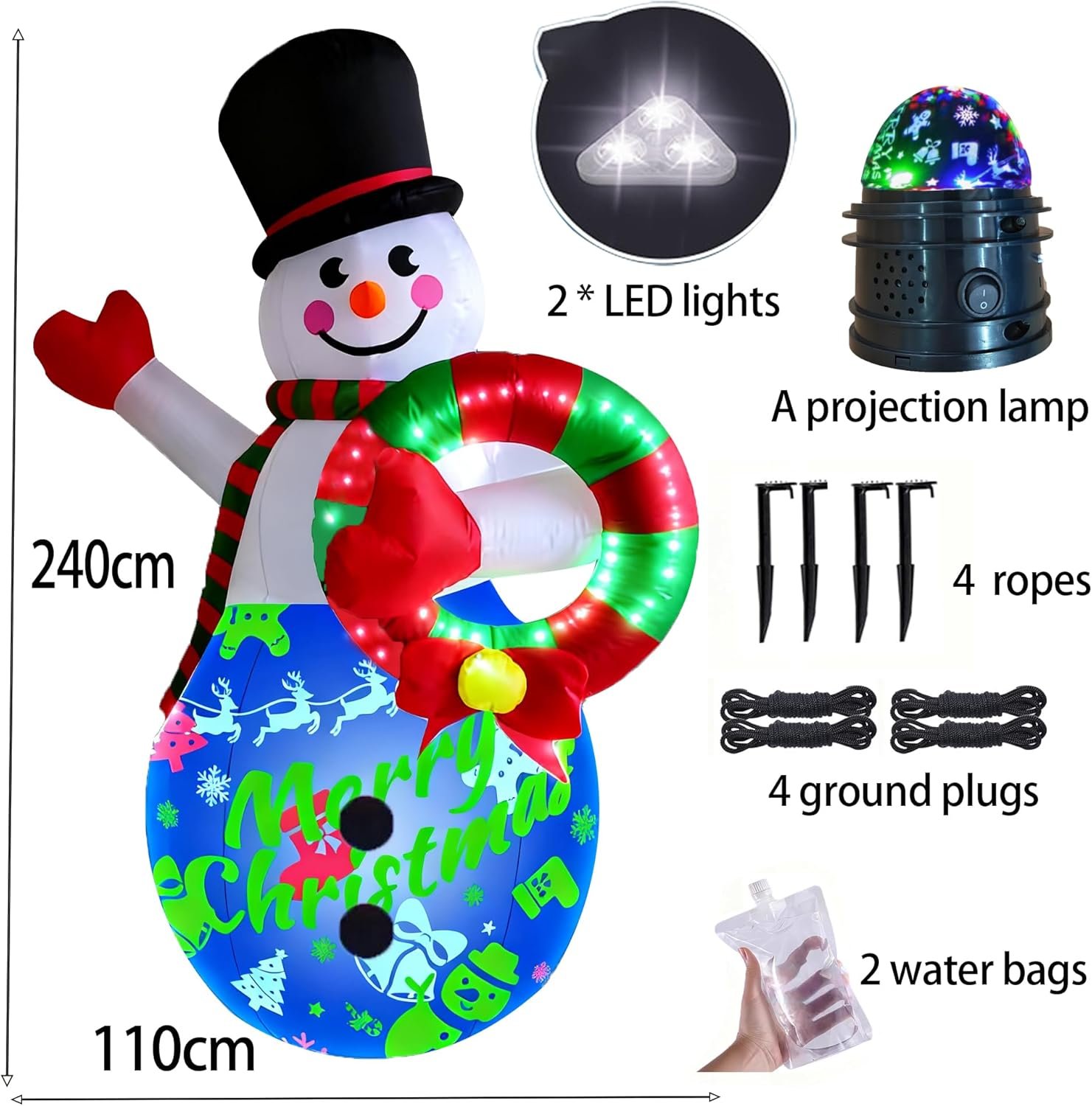 Be the first to review “8FT Christmas Inflatables Snowman Built-in Colour Projection LED Lights with Music,Festive Party New Year Patio Outdoor Christmas Decoration (Wreath Snowman)” Cancel reply