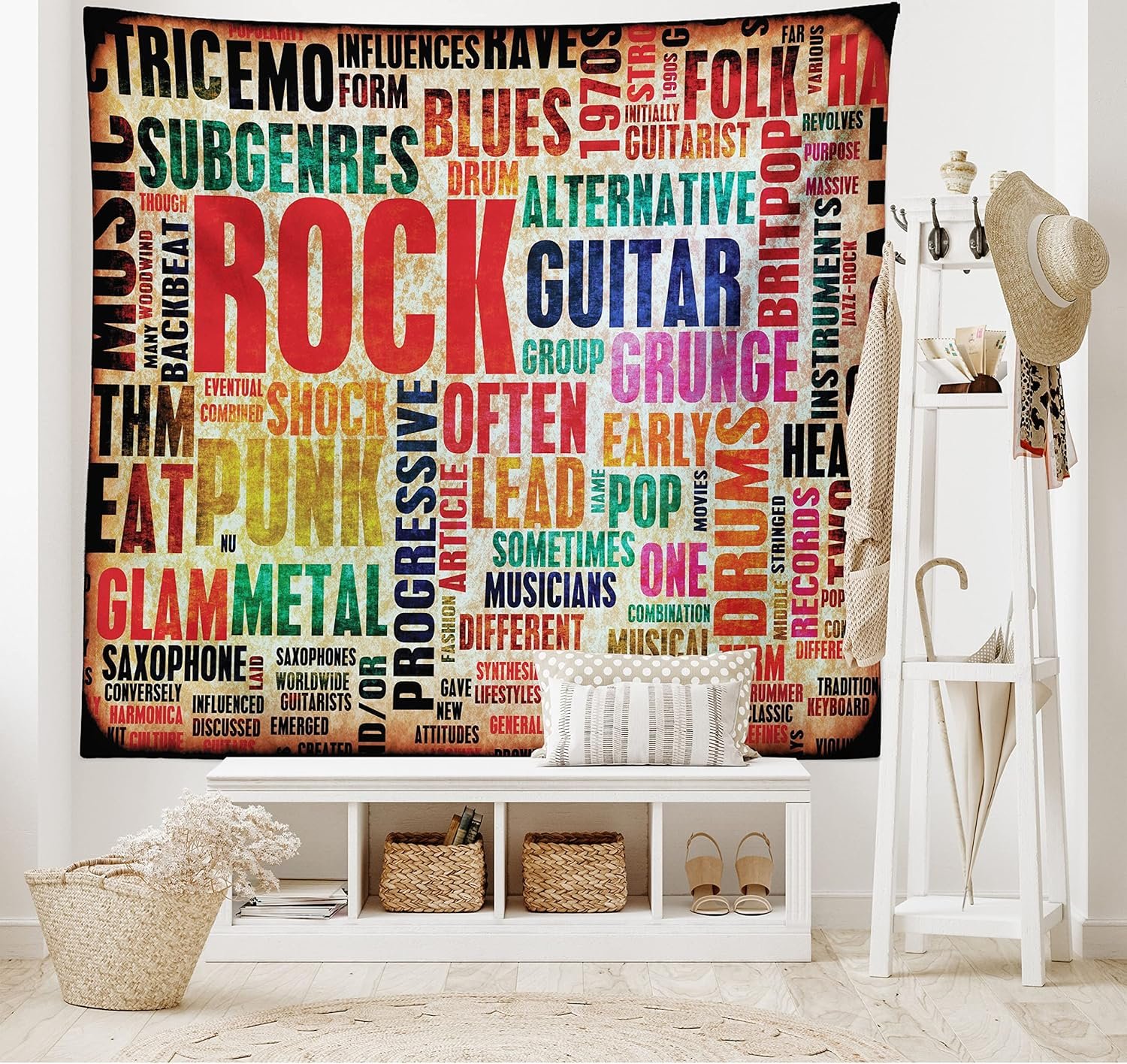 Tags: Ambesonne, Bedroom, Colors, Distressed, Dorm, festive audio gift, Grunge, Hanging, holiday music box, Lettering, Living, Music, music gift set, music themed present, musical stocking stuffer, Orange, Red, Retro, Rock, Roll, Room, Sound, Tapestry, Theme, Wall, Wide