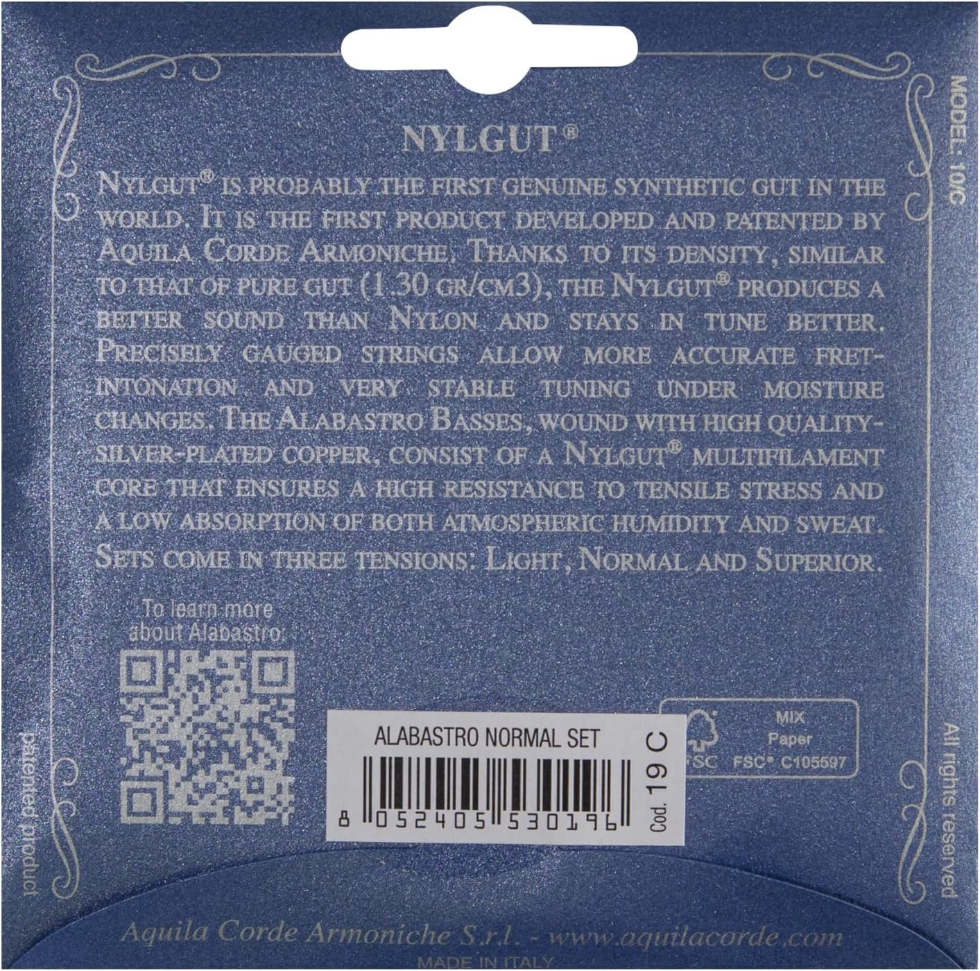 Aquila Alabastro 19C Set of Classical Guitar Strings (Normal Tension, Nylgut Material with Percussive Sound)