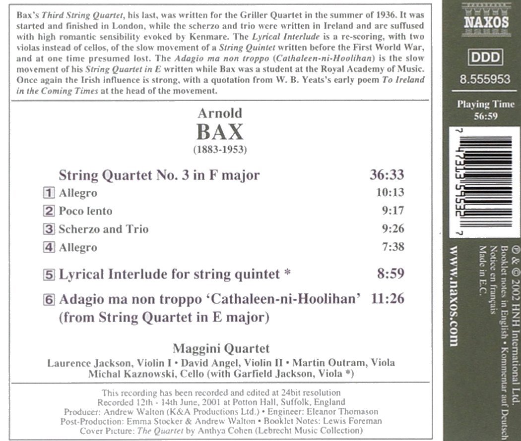 Bax: String Quartet No. 3 / Lyrical Interlude for string quintet / Adagio ma non troppo from String Quartet in E