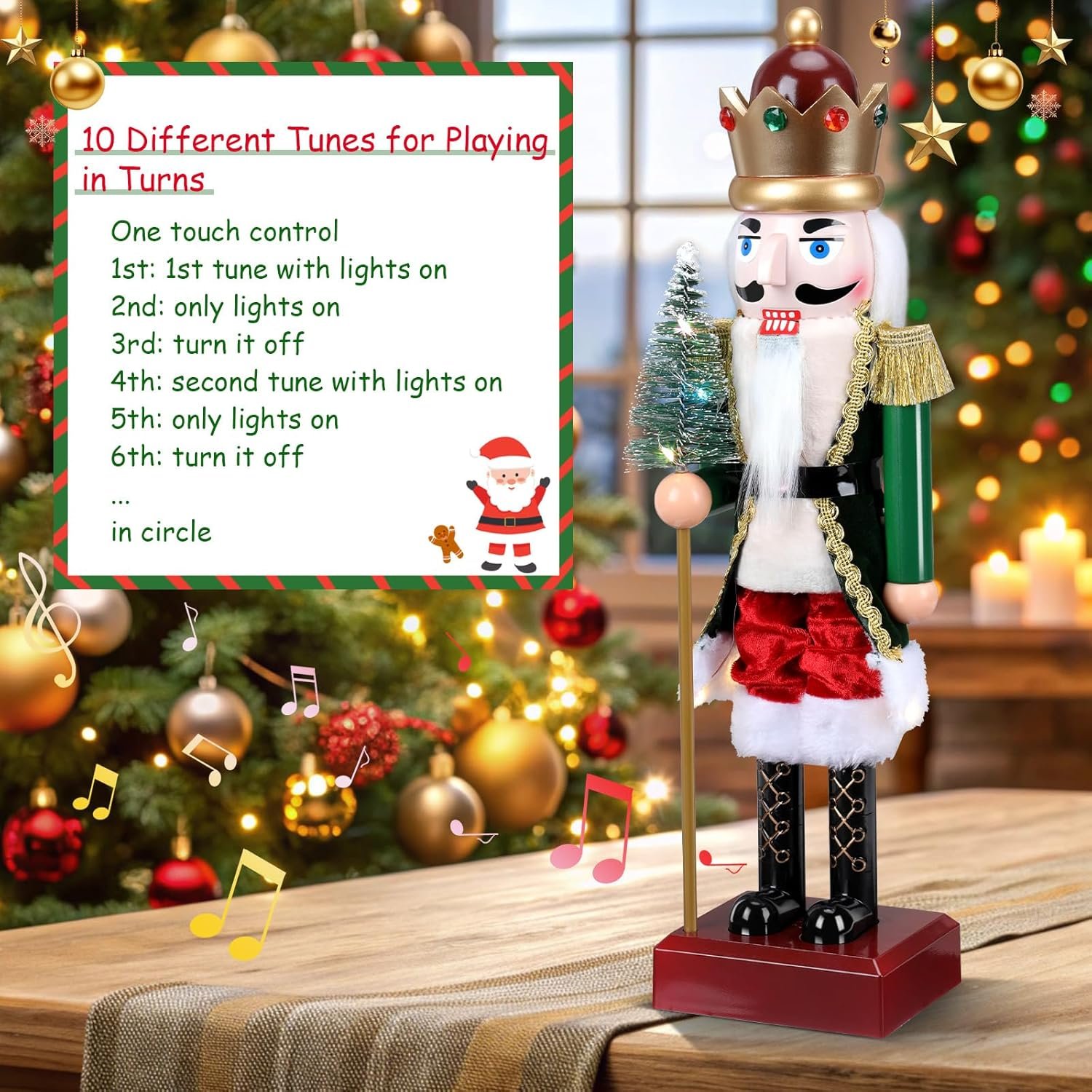 Biupky 15″ Nutcracker Christmas Decor, Nutcracker Music Box with Light and 8 Christmas Songs, Nutcracker Gifts Christmas Decorations for Holiday Party Tabletop(Green-Light Up)