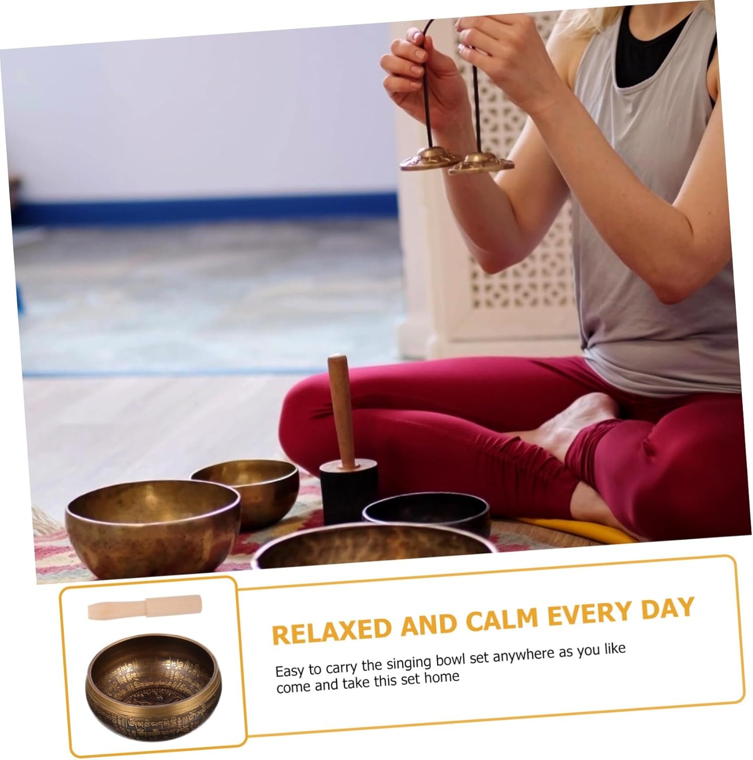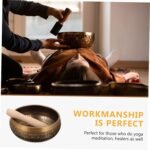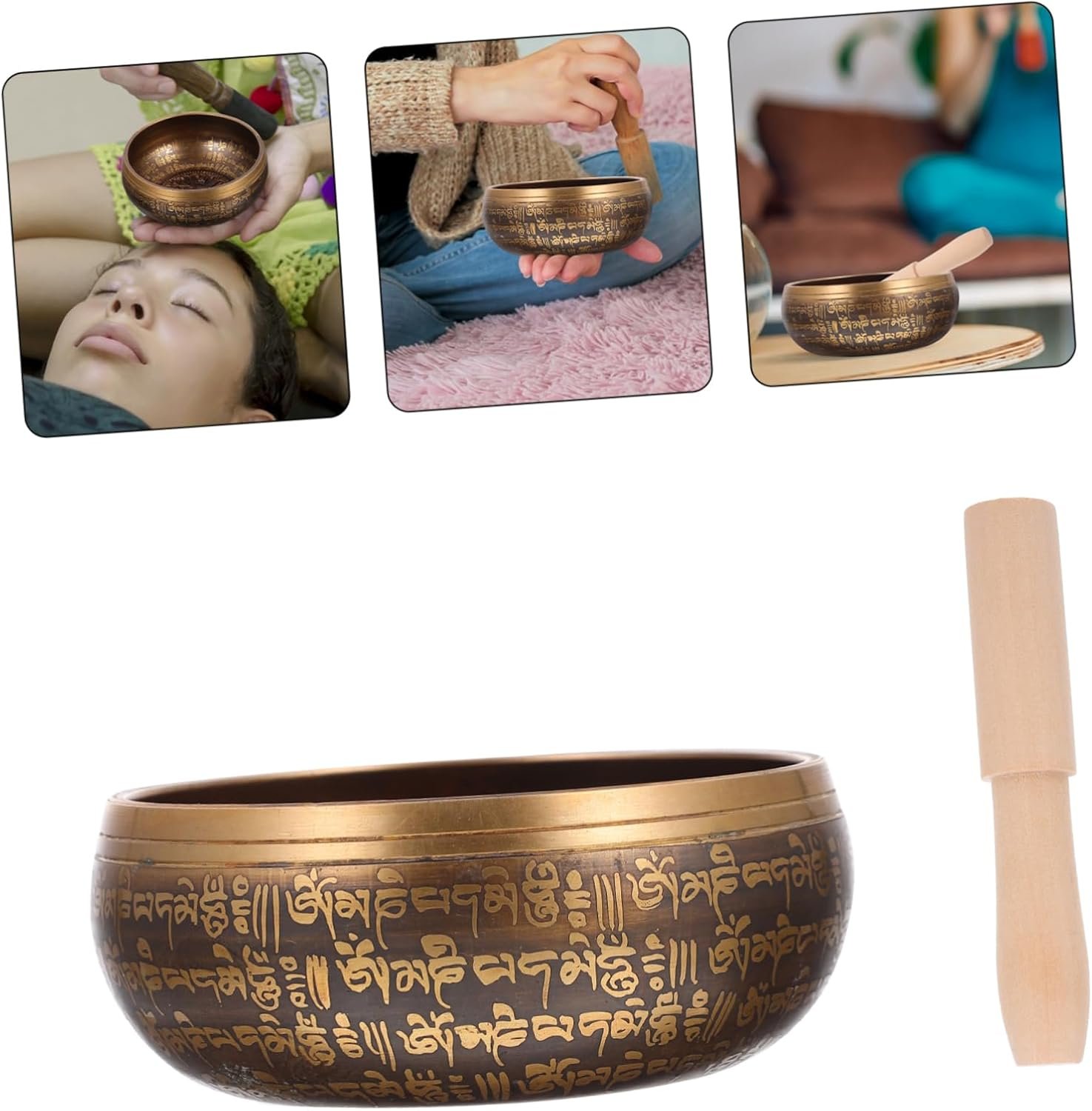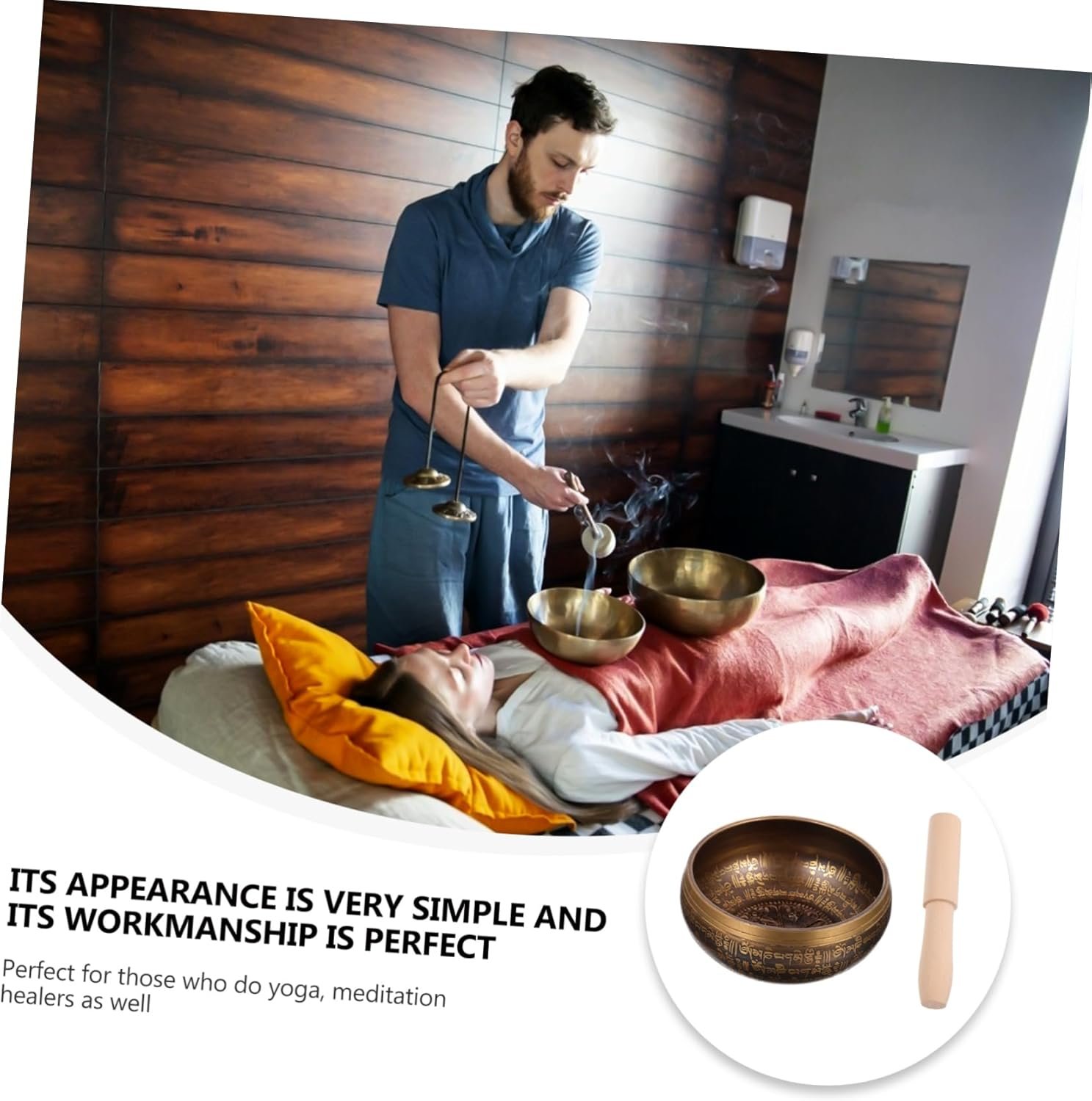 Buddha Singing Bowl Wooden Rod Yoga Decor Meditation Bowl for Mind Healing Tabletop Adornment Tibetan Resonance Sound Therapy