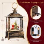 Christmas Snow Globe Lantern with Music and Light, Spinning Water Glittering Lantern, Battery & USB Powered Lighted Holiday Decor Gift (Santa Claus)