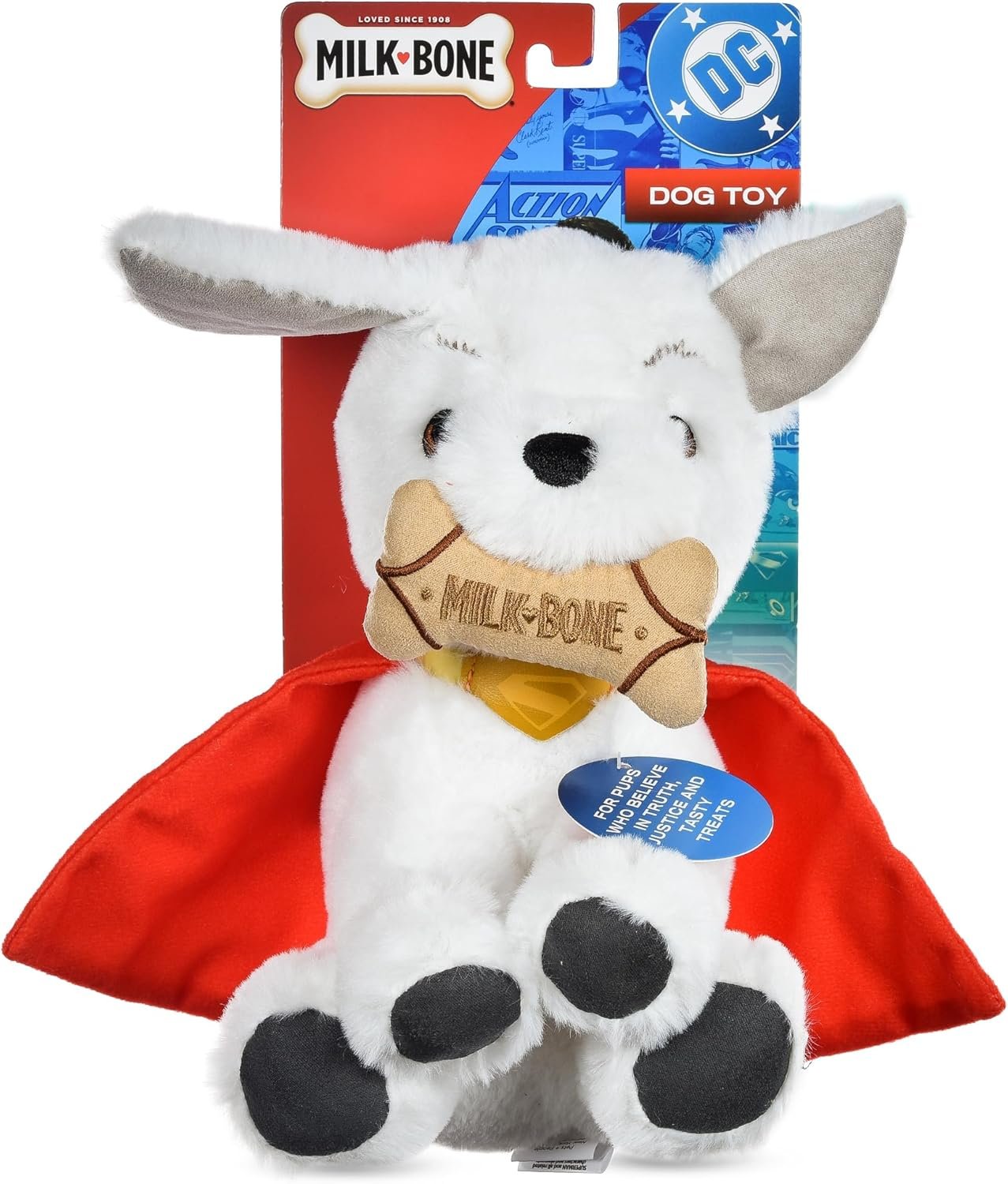 DC Comics Superman Krypto The Superdog Plush Dog Toy – Soft Squeaky Dog Toy with Crinkle Sounds, Cape & Milk-Bone Treat Design, 7.5 Inch