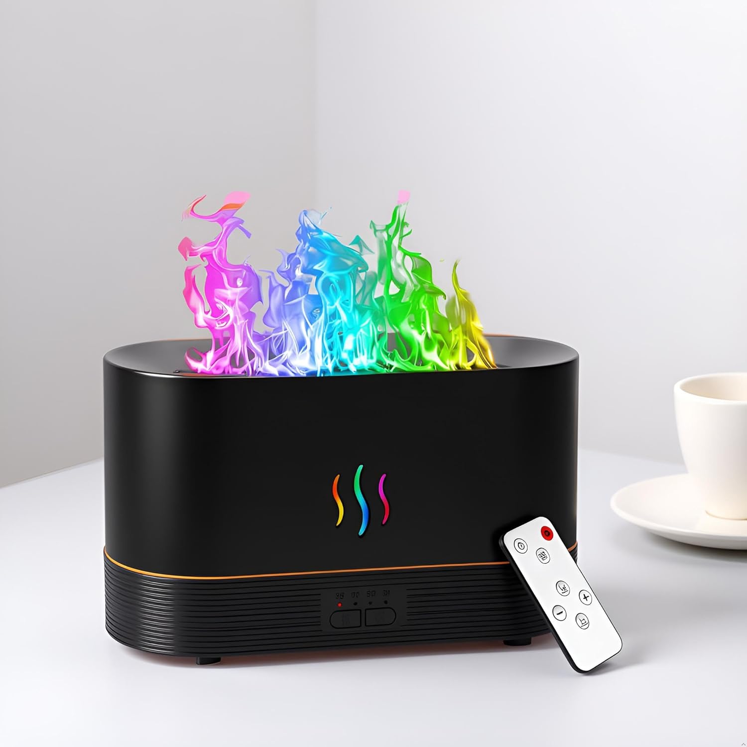Colorful Flame Diffusers for Essential Oils Large Room-Upgraded 300ML Aroma Diffuser Humidifier Quiet Diffuser with Remote Control, Night Lights, Timer, No-Water Auto Off