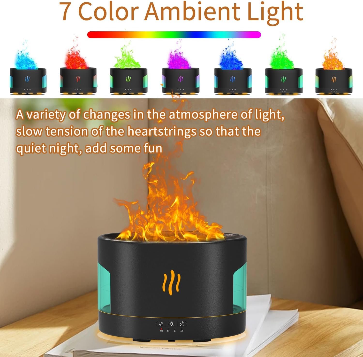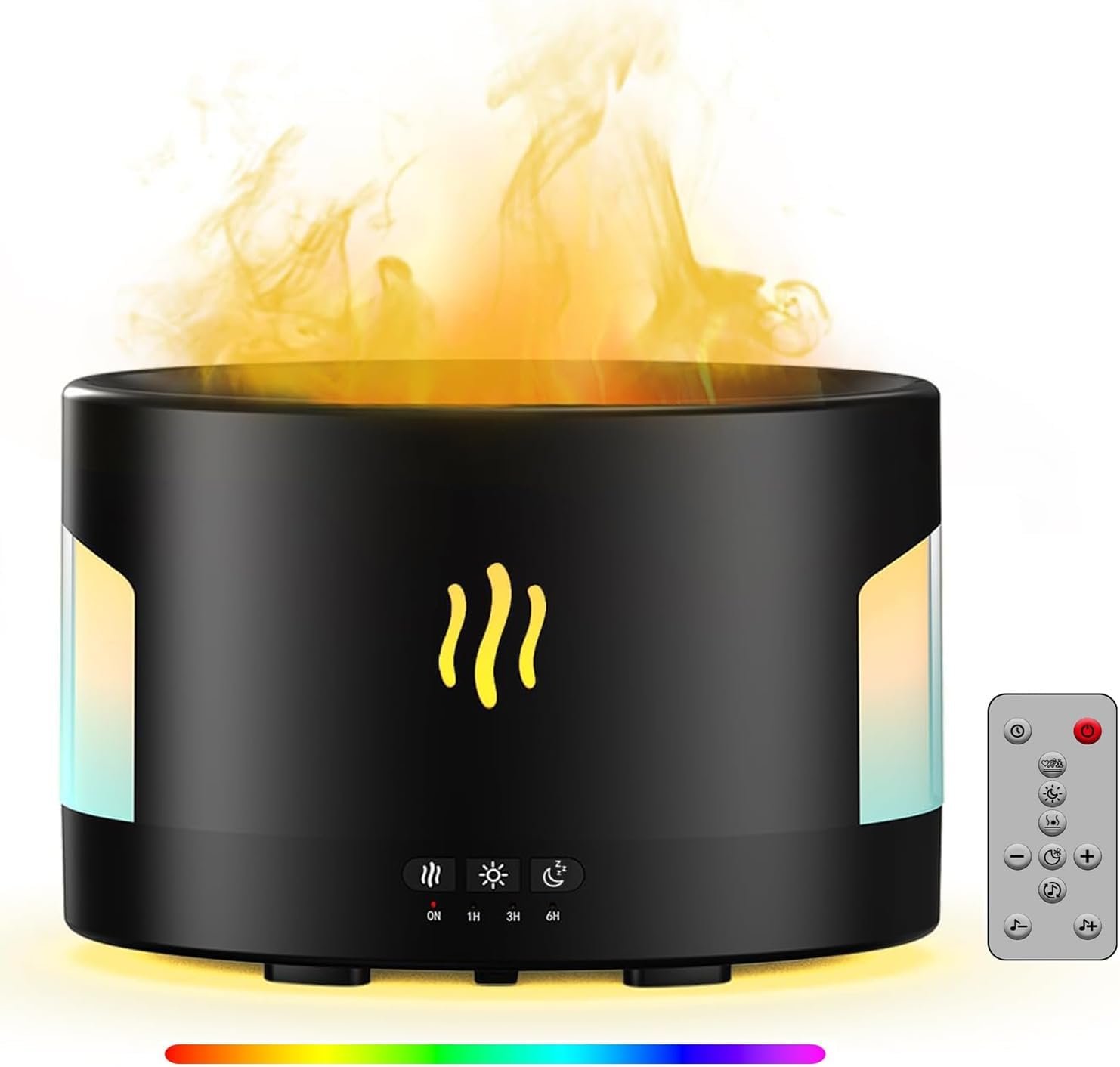 Depulat 4-in-1 7-Color Flame Aroma Essential Oil Diffuser, 450ML Quiet Humidifier for Large Room Mist Adjustable, Bluetooth Speaker, White Noise Machine, with Timer, No-Water Auto Off, Remote Control