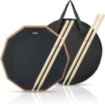Dumb Drum Pad Set – 12-Inch Practice Pad with 5A Drumsticks & Carry Bag – Black