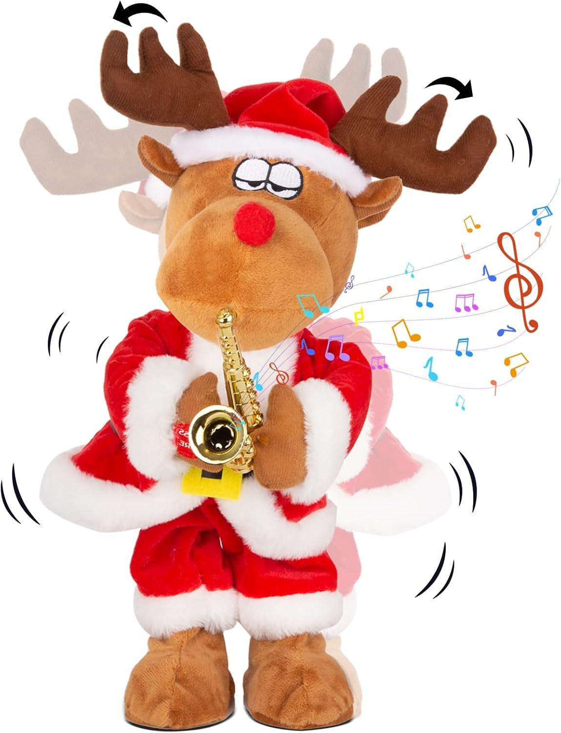 Electric Reindeer Toy with Singing, Dancing, and Saxophone Playing, Christmas Animatronics Musical Reindeer, Christmas Plush Doll Toy for Kids, Xmas Gift & Indoor Festive Decoration