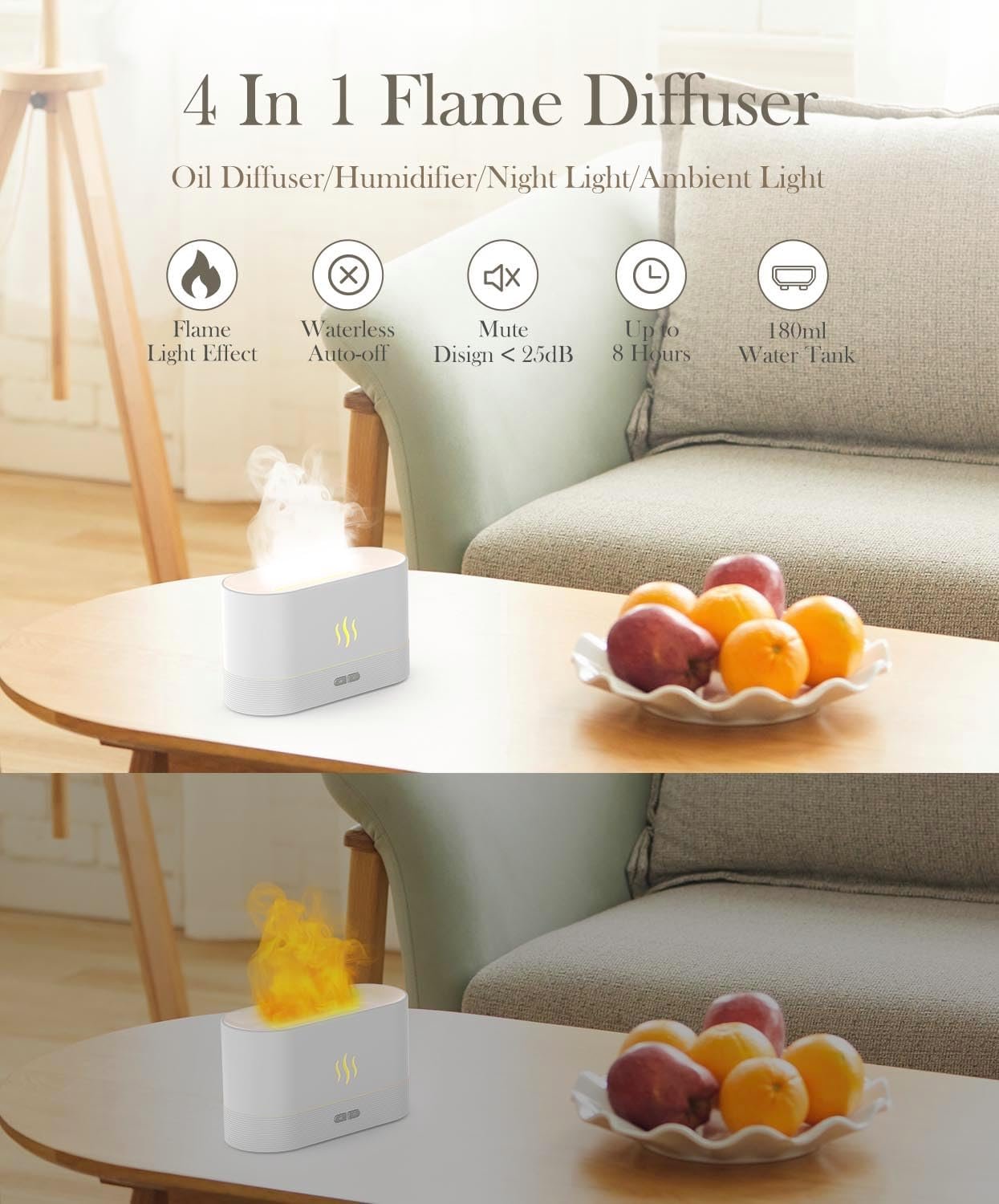 Essential Oil Diffuser,Humidifier with 7 Colors Flame Light,180ml Air Humidifiers for Bedroom, Home, Office, Gifts – Portable,Auto-Off Protection,4 Modes Mist(Black)