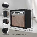 Fojill 20W Watt Electric Guitar Amplifier Amp Practice Small Portable Travel Mini Amp with 3.5 Headphone Jack Aux Distortion Gain Treble Bass Volume (Black, 20W)