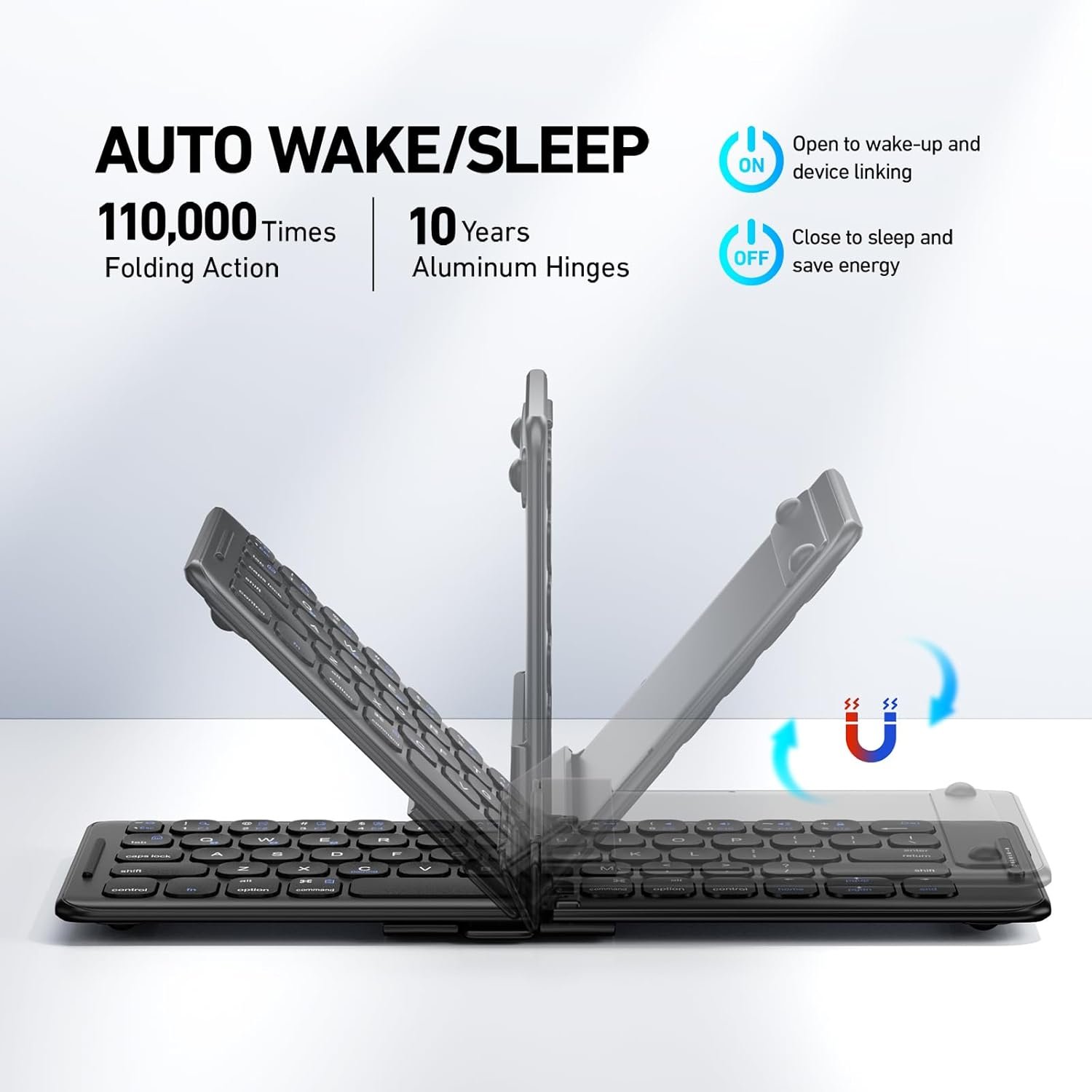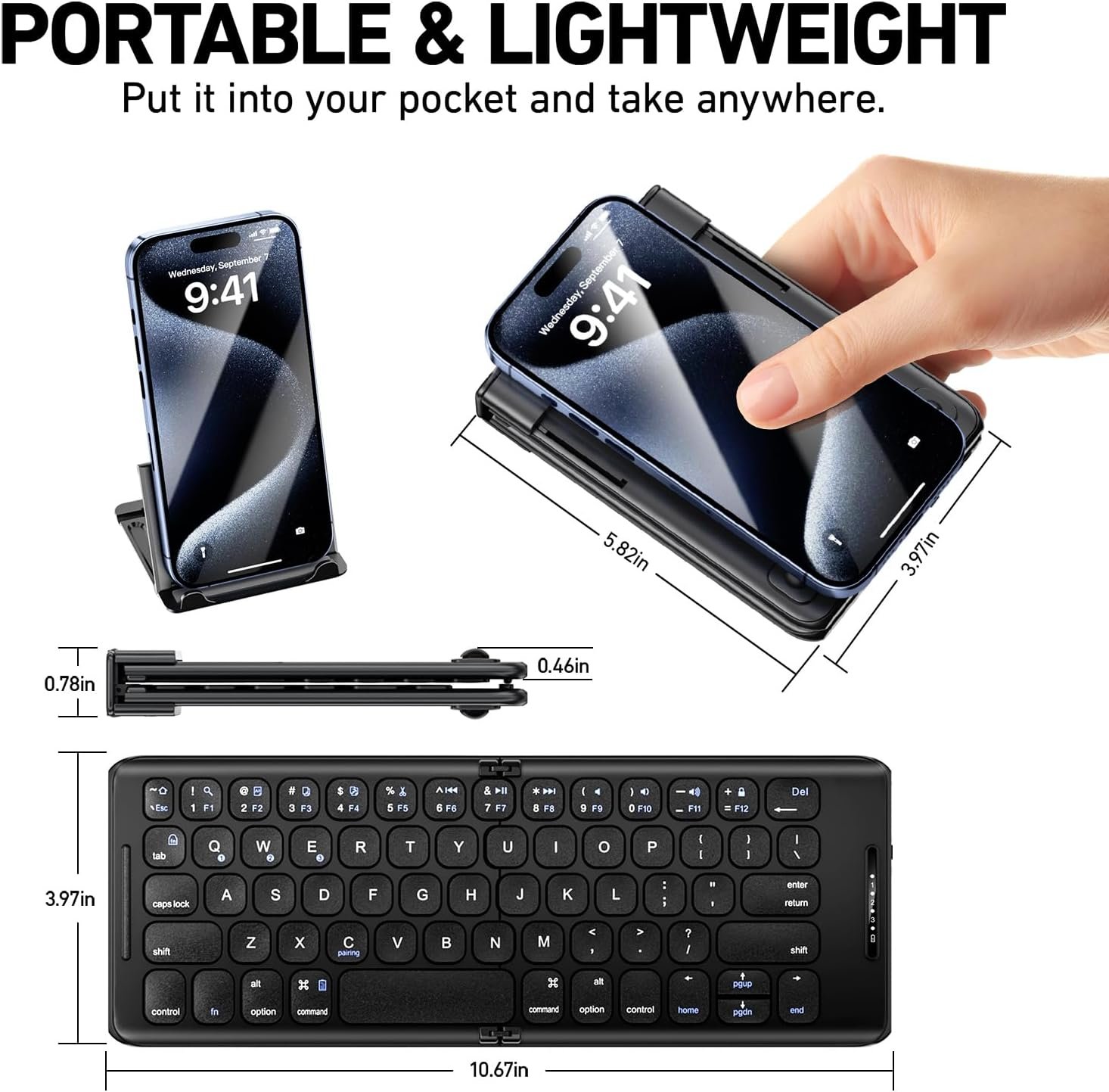 Foldable Bluetooth Keyboard,Portable Pocket Wireless Folding Keyboard, Rechargeable Full Size Ultra Slim Travel Keyboard for iOS, Android, Windows Tablet & Laptop,B097