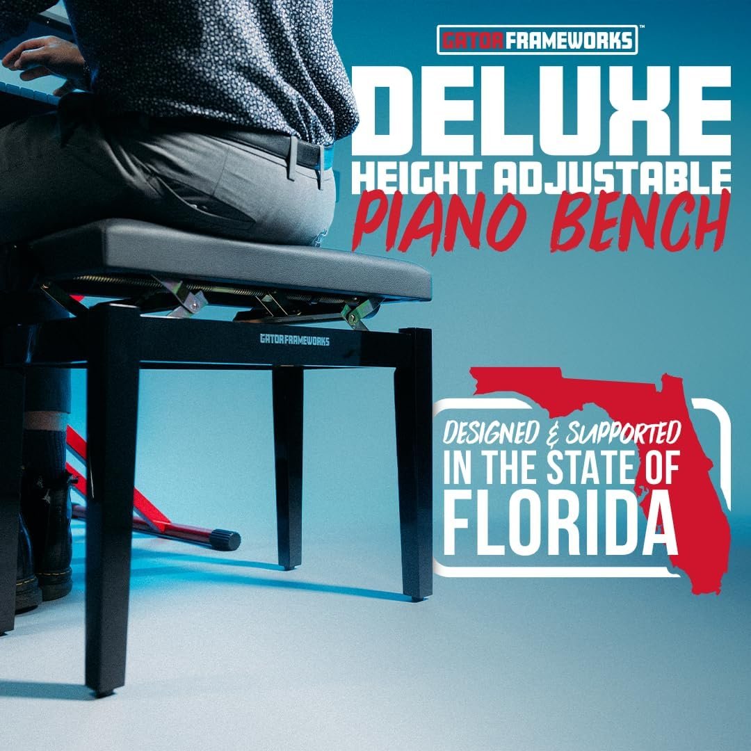 Gator Frameworks Keyboard Series Deluxe Height Adjustable Piano Bench, Adjusts 18″ – 22.5″, (GFW-KEYBENCH-HABK)