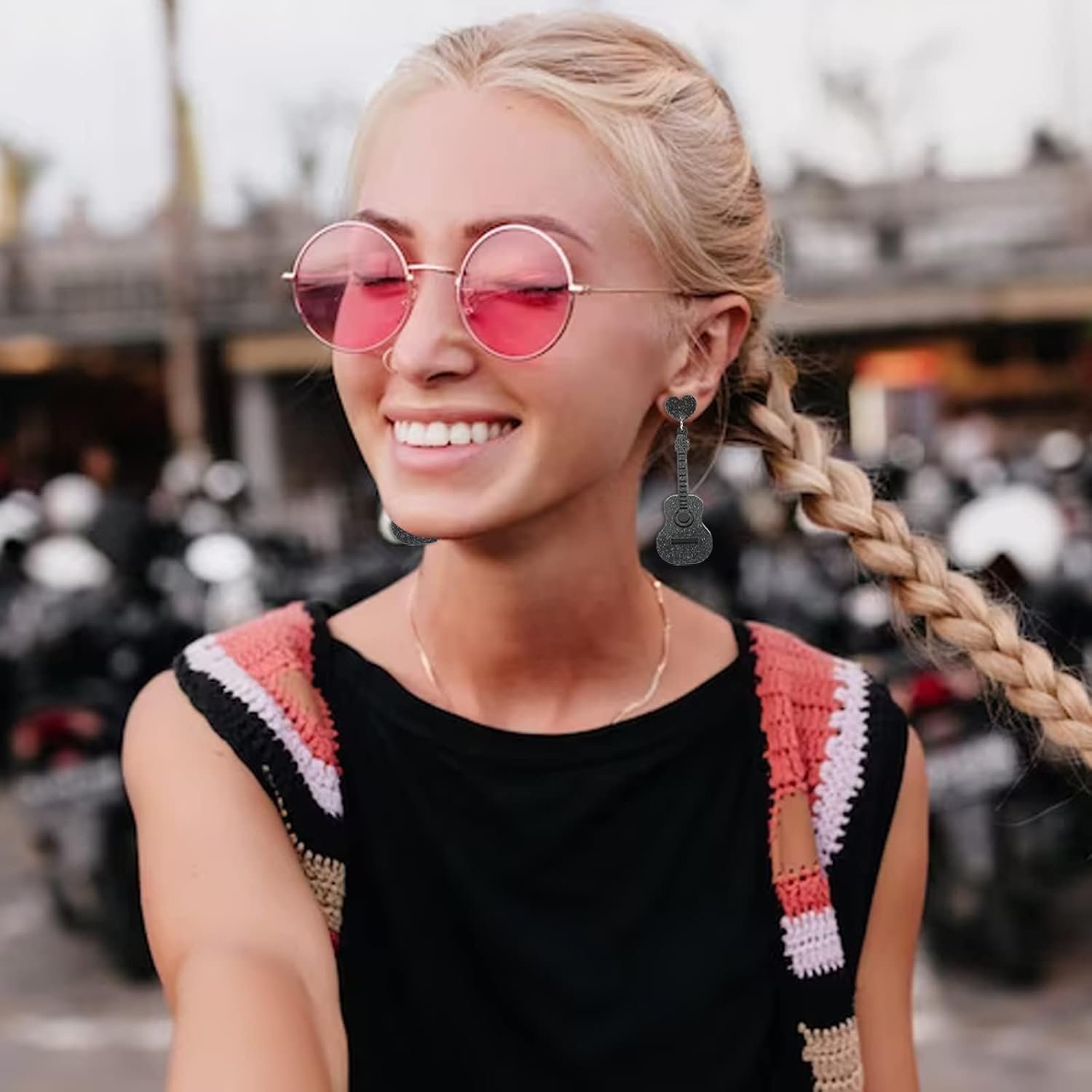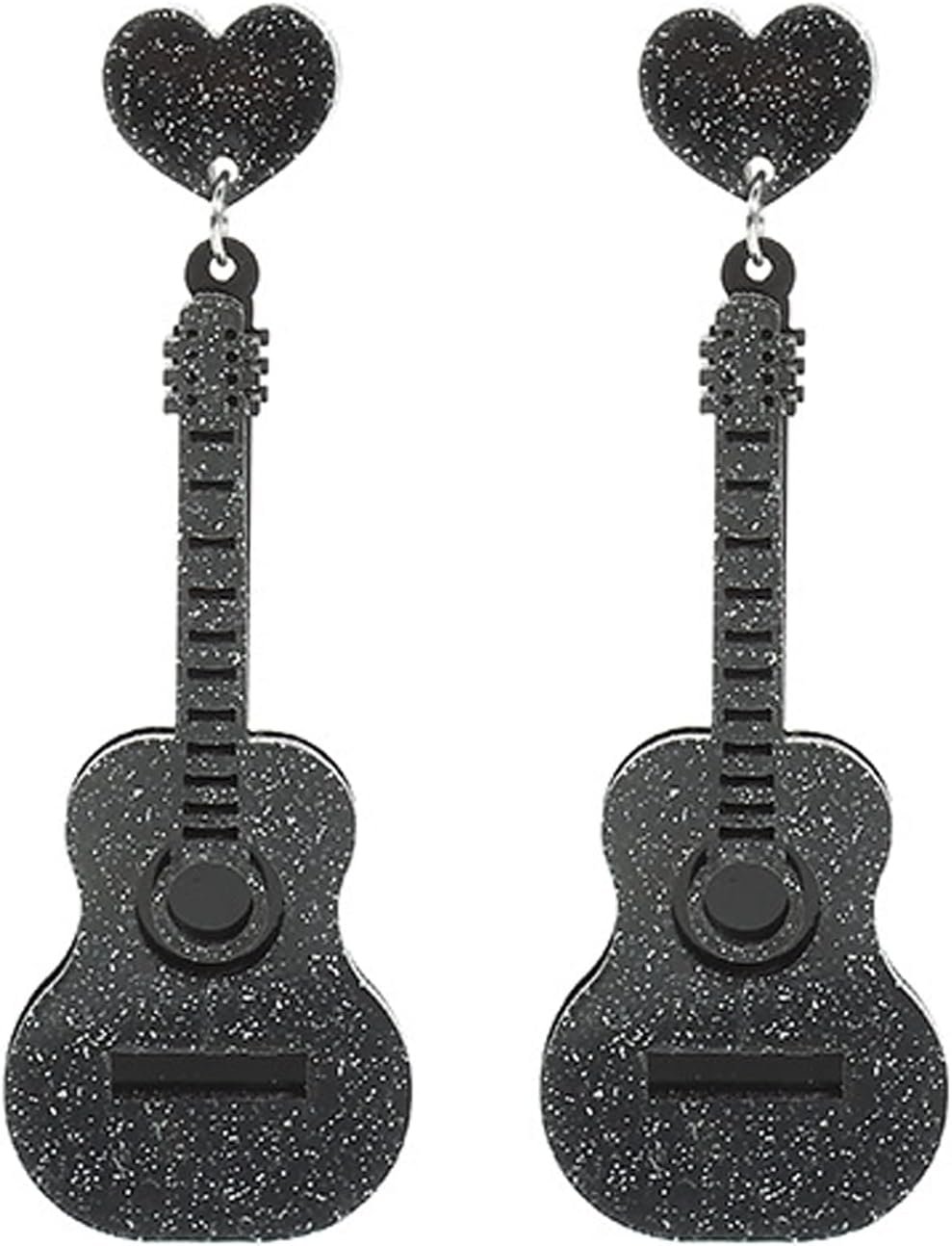 Guitar Dangle Earrings for Woman Music Punk Dangle Earrings Music Note Earrings Hip Hop Love Heart Stud Earrings Jewelry Gifts