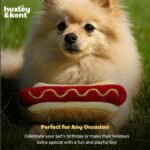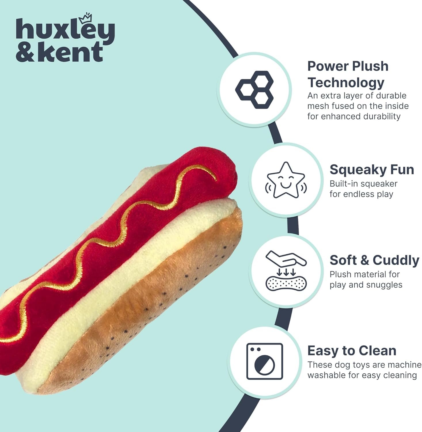 Huxley & Kent Funny Dog Toy w/Squeaker – Power Plush Squeaky Dog Toys for Small, Medium & Large Dogs – Soft Stuffed Animal for Indoor Play & Fetch – Haute Dog, Small