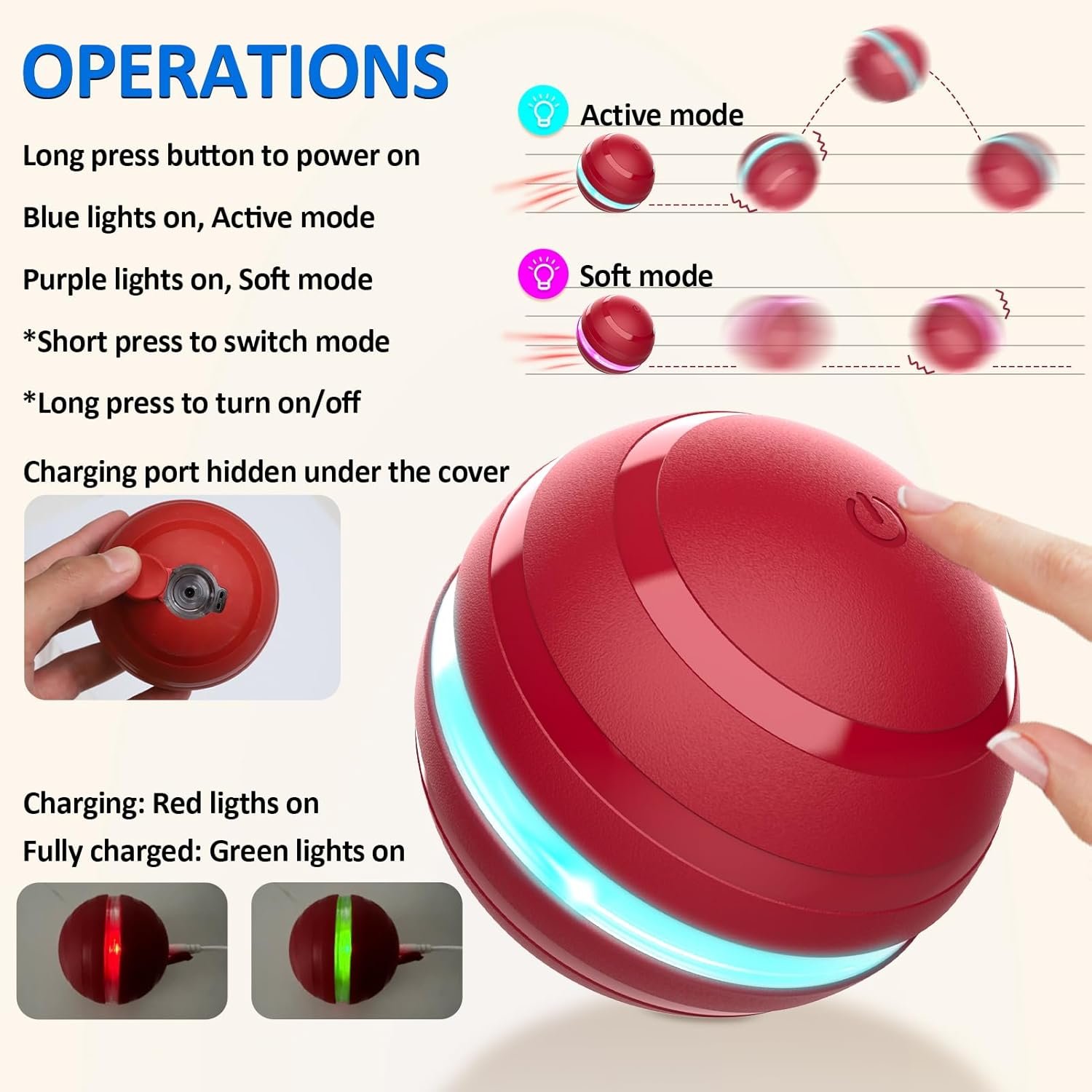 Interactive Dog Balls with Motion Activated, Wicked Ball Squeaky Dog Toy Oxford Bag Keep Dogs Busy (Red Ball)
