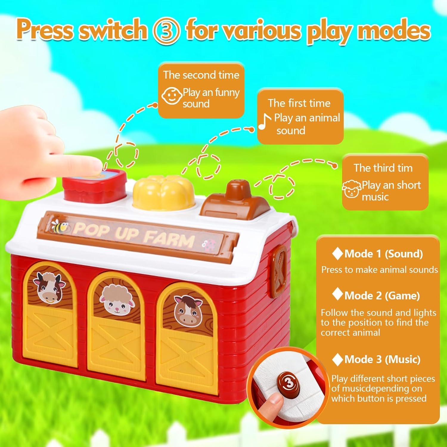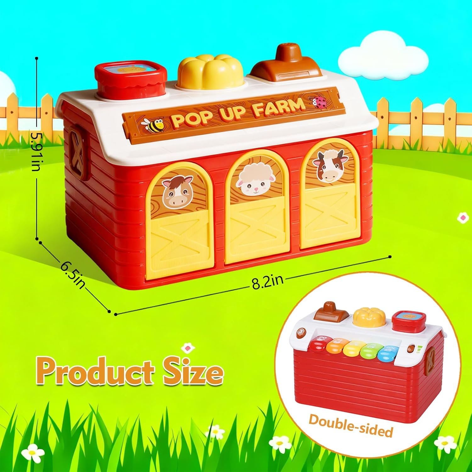 Interactive Pop up Farm Animal Toys with Music & Light & Piano, Montessori Cause and Effect Toys for 1 Year Old Boy, Toddler Early Learning Toys, Birthday Gifts for Baby Infant Toy 12-18 Months