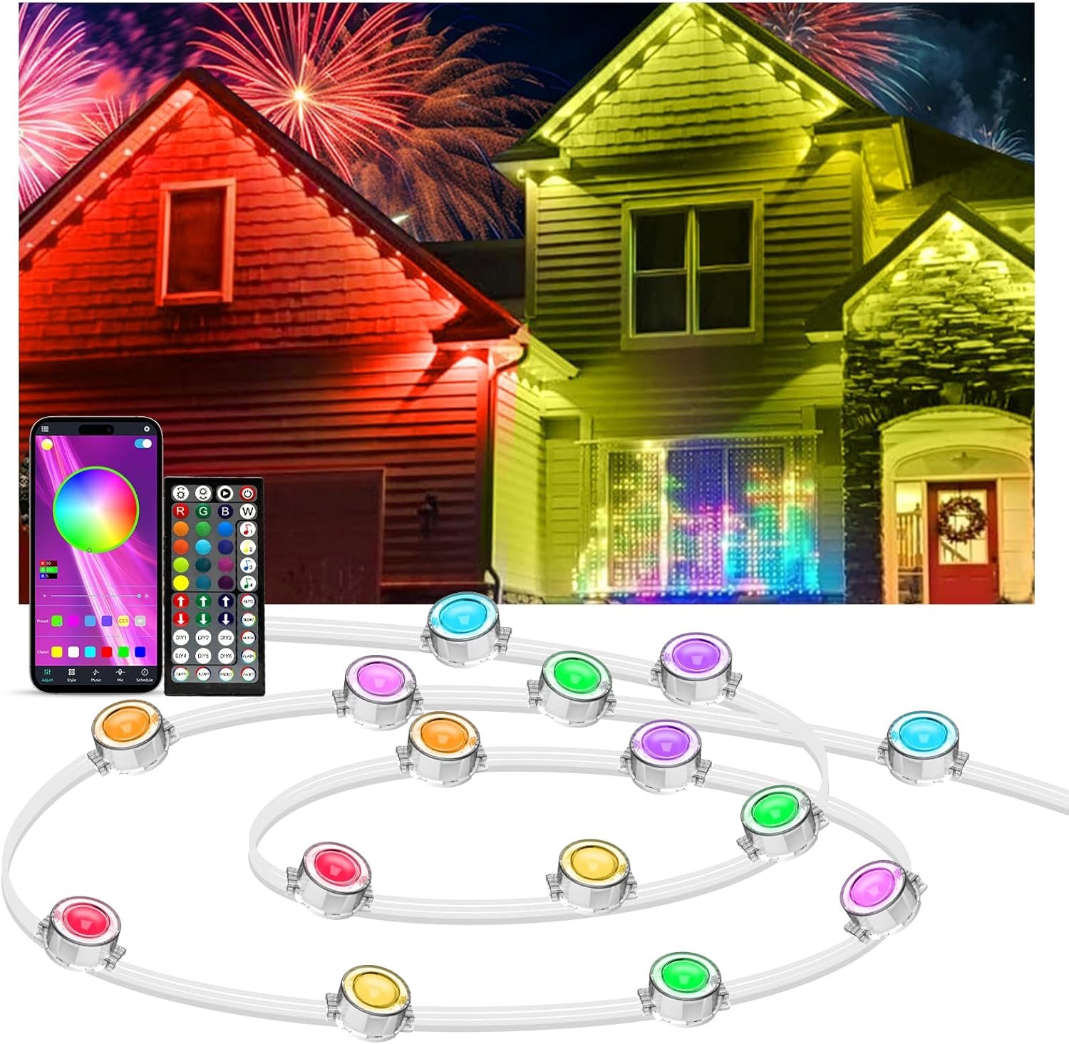 IVRICH Smart Permanent Outdoor Lights, 100FT RGB Eave Light with DIY Scene Modes, APP/Remote Control, IP67 Waterproof, Music Synchronization, Timer Function, for Christmas, Party, Holiday Decor
