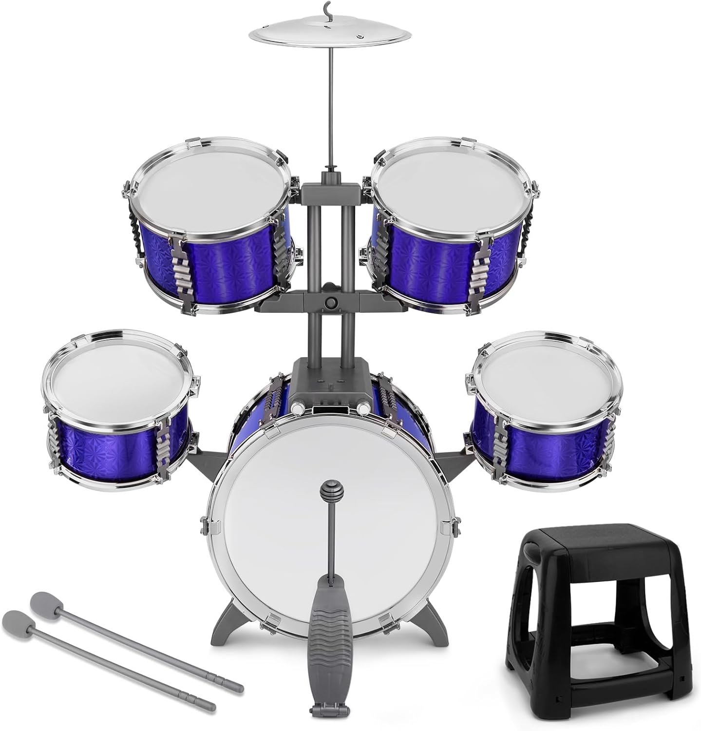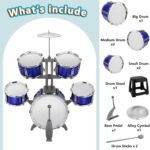 Kids Drum Set 5 Piece Toddlers Jazz Drum Kit with Stool Musical Instrument Toys for 3 4 5 6 7 Year Old Boys Girls Birthday Gift