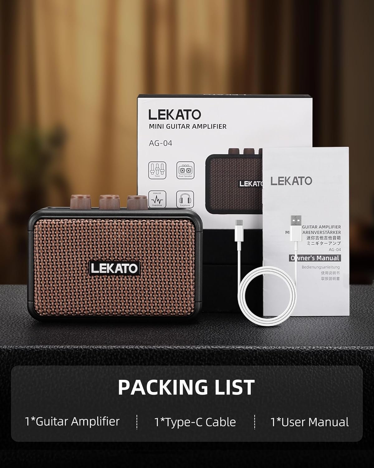Be the first to review “LEKATO Mini Guitar Amplifier, Dual Speakers 5W, Rechargeable Electric Guitar Amp Bluetooth with Clean Overdrive, 6H Working, Headphone Jack, Portable Small Amp for Practice AG-04 (Brown)” Cancel reply