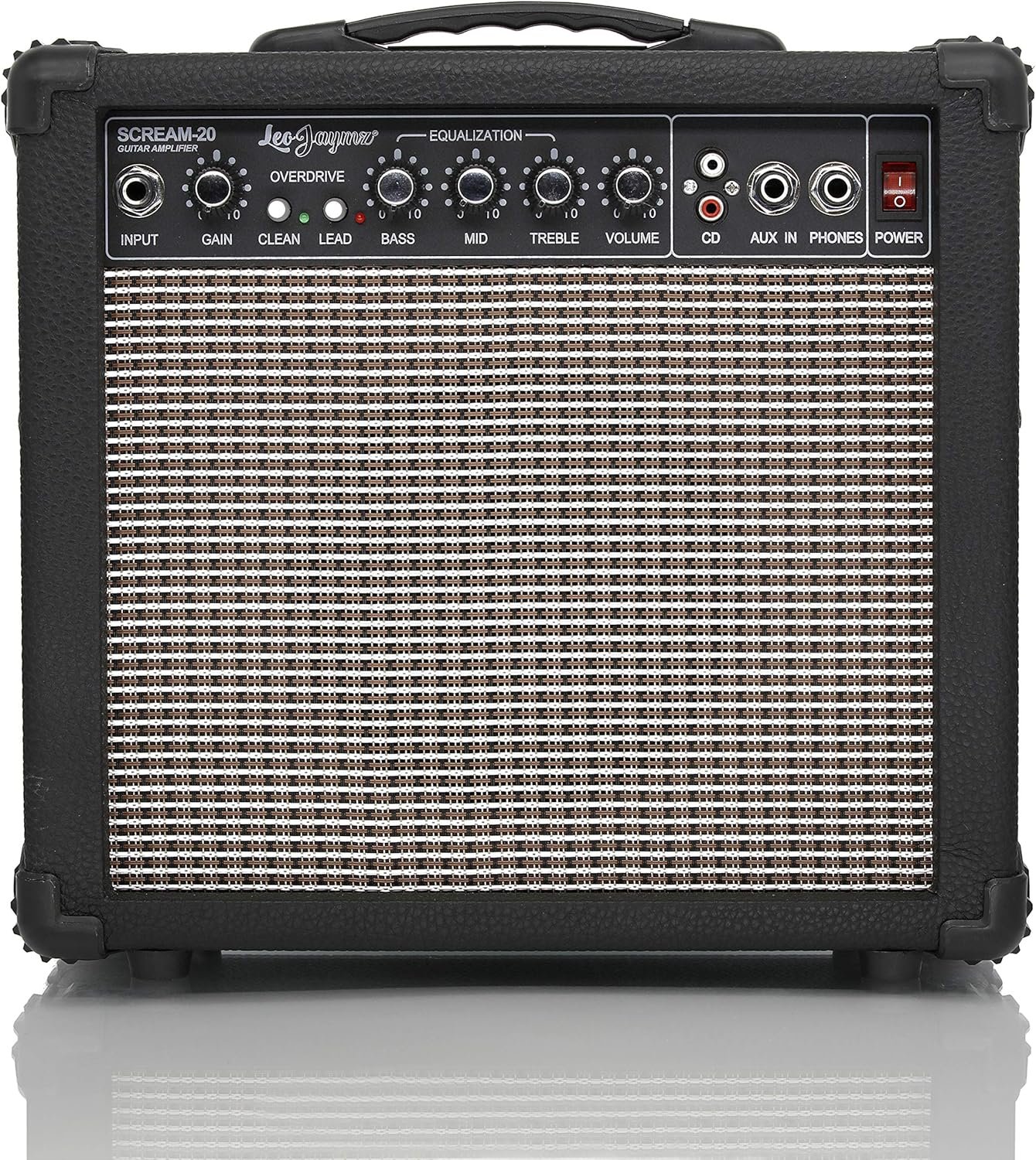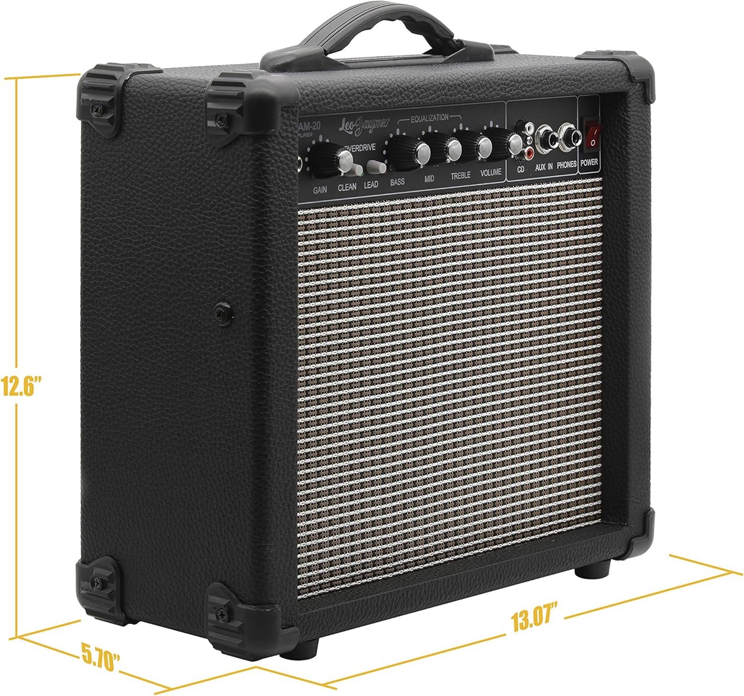 Leo Jaymz 20W Electric Guitar Amplifier – Clean and Distortion Channel – 3 Band Equalization and CD Line Input – Recording Studio, Practice Room, Small Courtyard (6.5″, Black)
