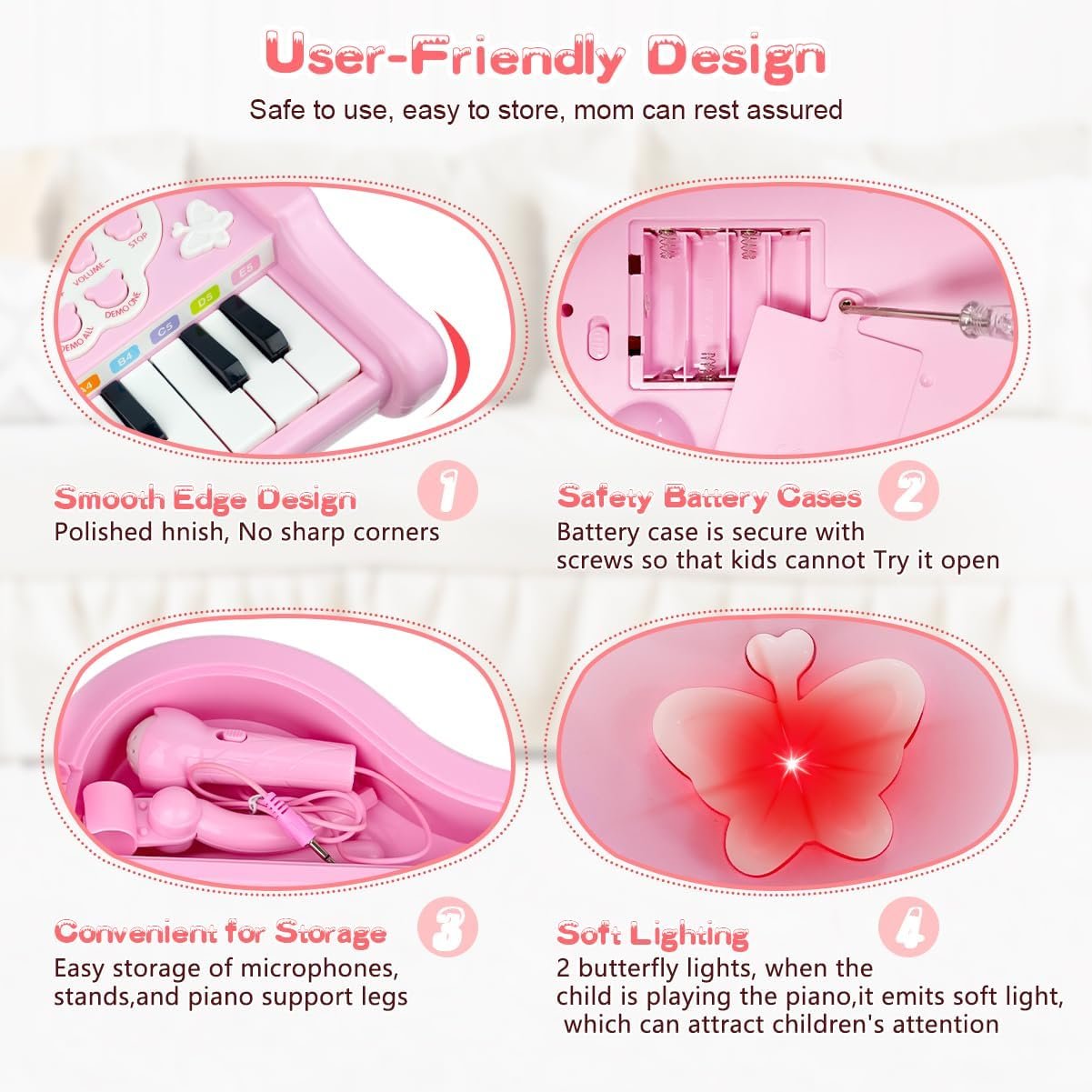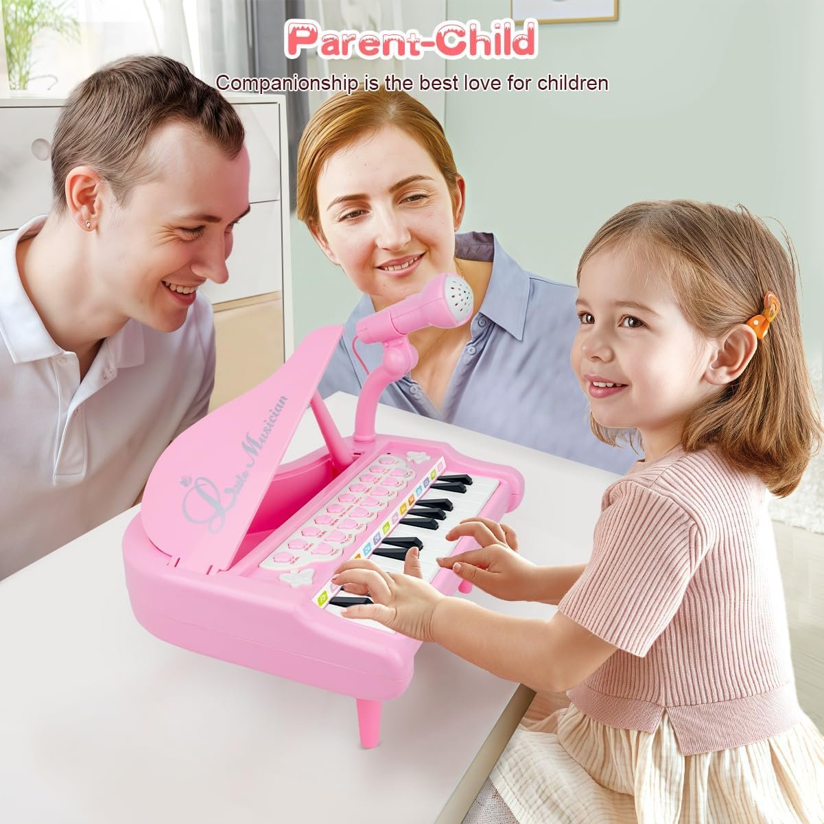 Love&Mini Pink Piano Toys for 1+Years Old Girls First Birthday Gifts Toddler Piano Music Toy Instruments with 24 Keys and Microphone