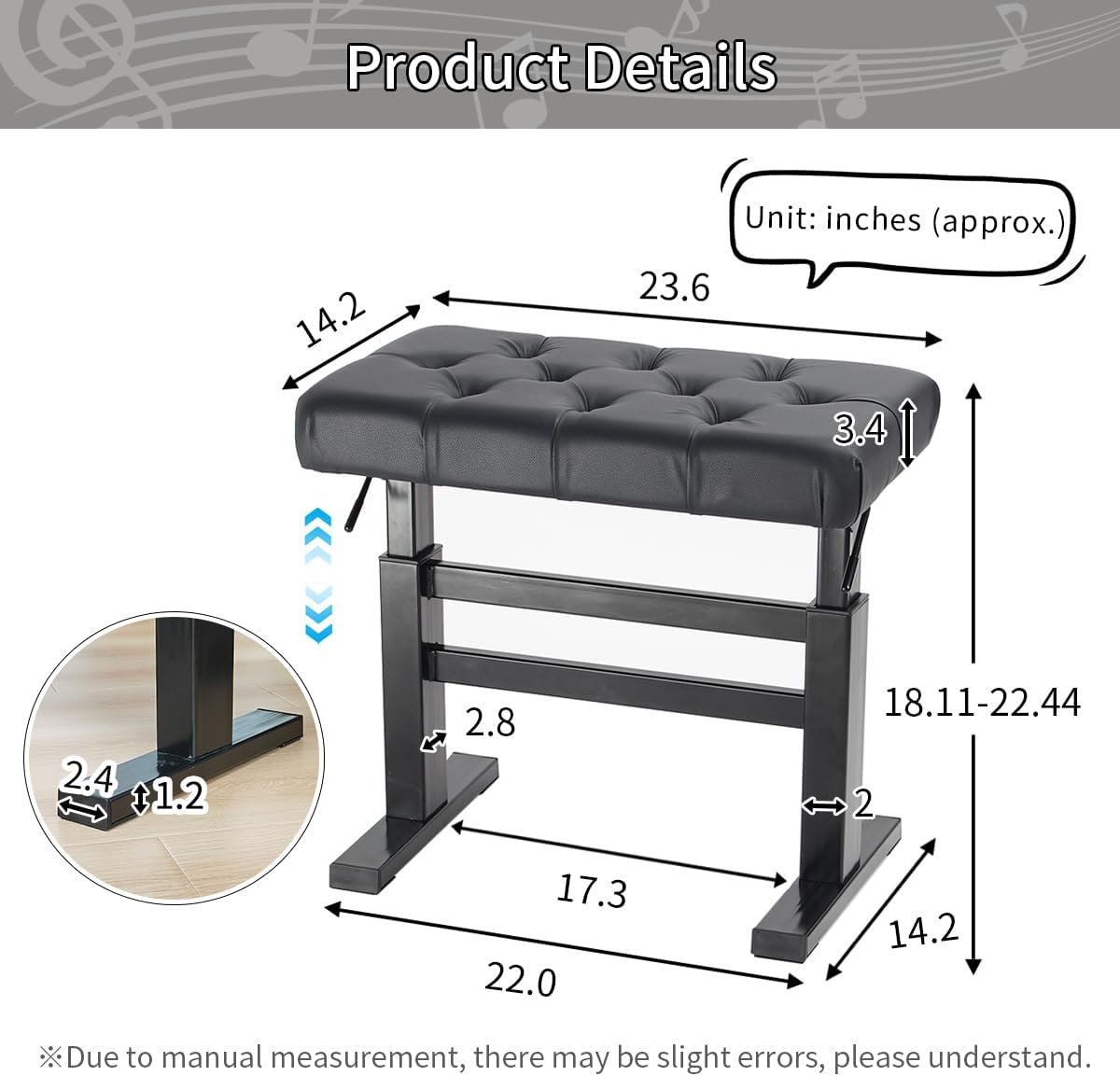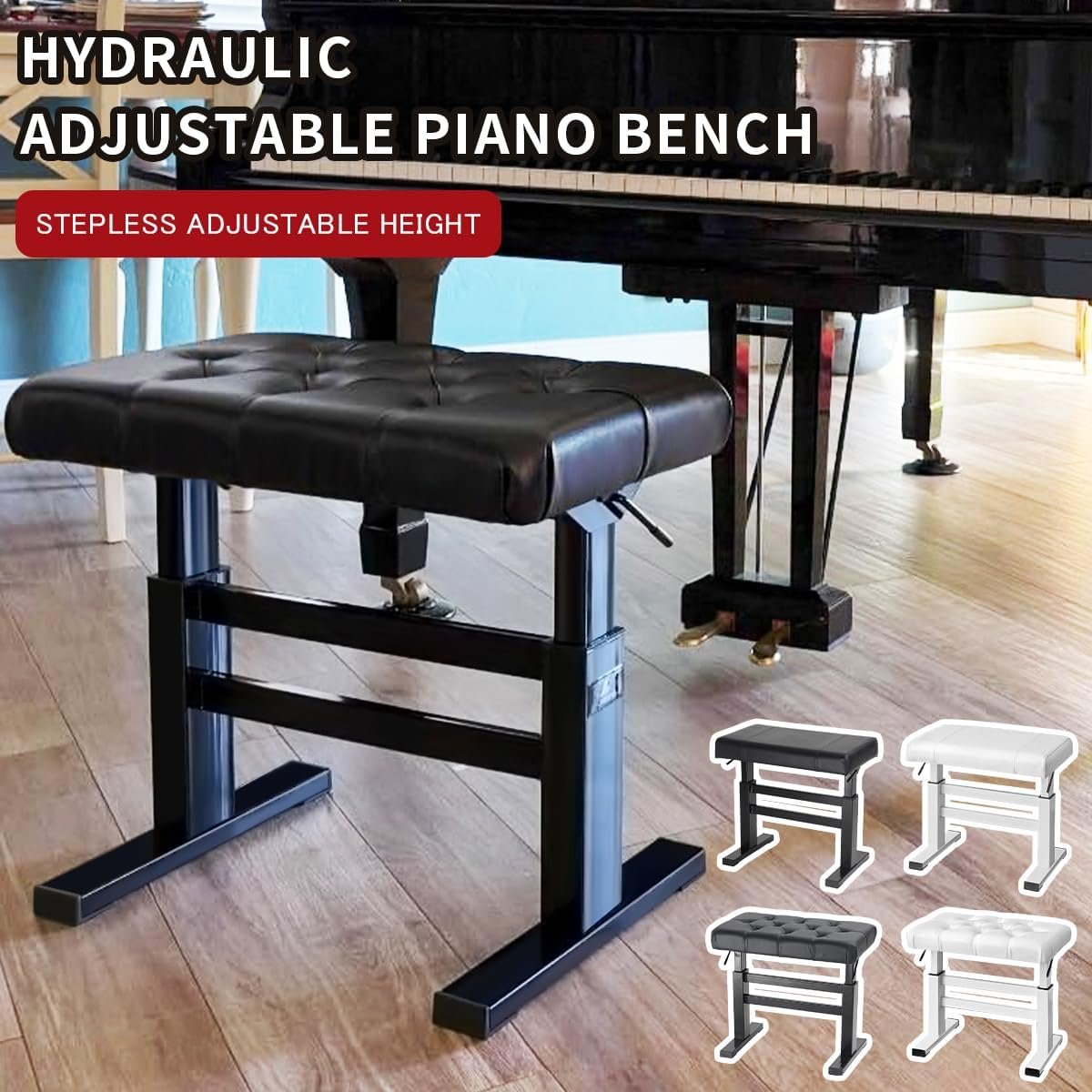 lumizone Hydraulic Lifting Keyboard Bench – Height Adjustable Piano Bench Heavy Duty Piano Stool with 23.62″ x 14.17″ PU Leather, High-Density Sponge & Alloy Base 2 Styles & 2 Colors (Black, Tufted)