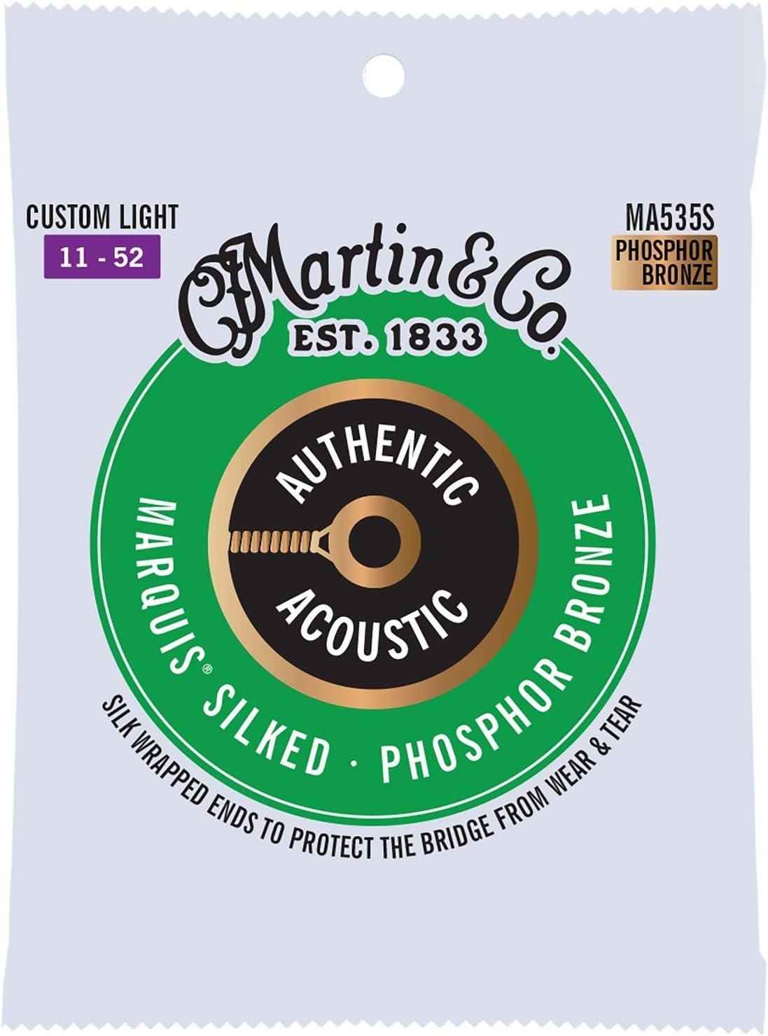 Martin Authentic Acoustic® Marquis® Silked Guitar Strings – Phosphor Bronze, Custom Light Gauge | Warm, Balanced Tone with Bridge Protection | Silk-Wrapped Ball Ends