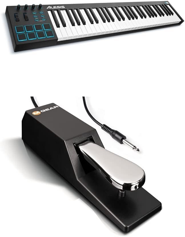 MIDI Controller Bundle | 61 Key USB MIDI Keyboard with 8 Beat Pads, Sustain Pedal and Software Suite – Alesis V61 and M-Audio SP-2