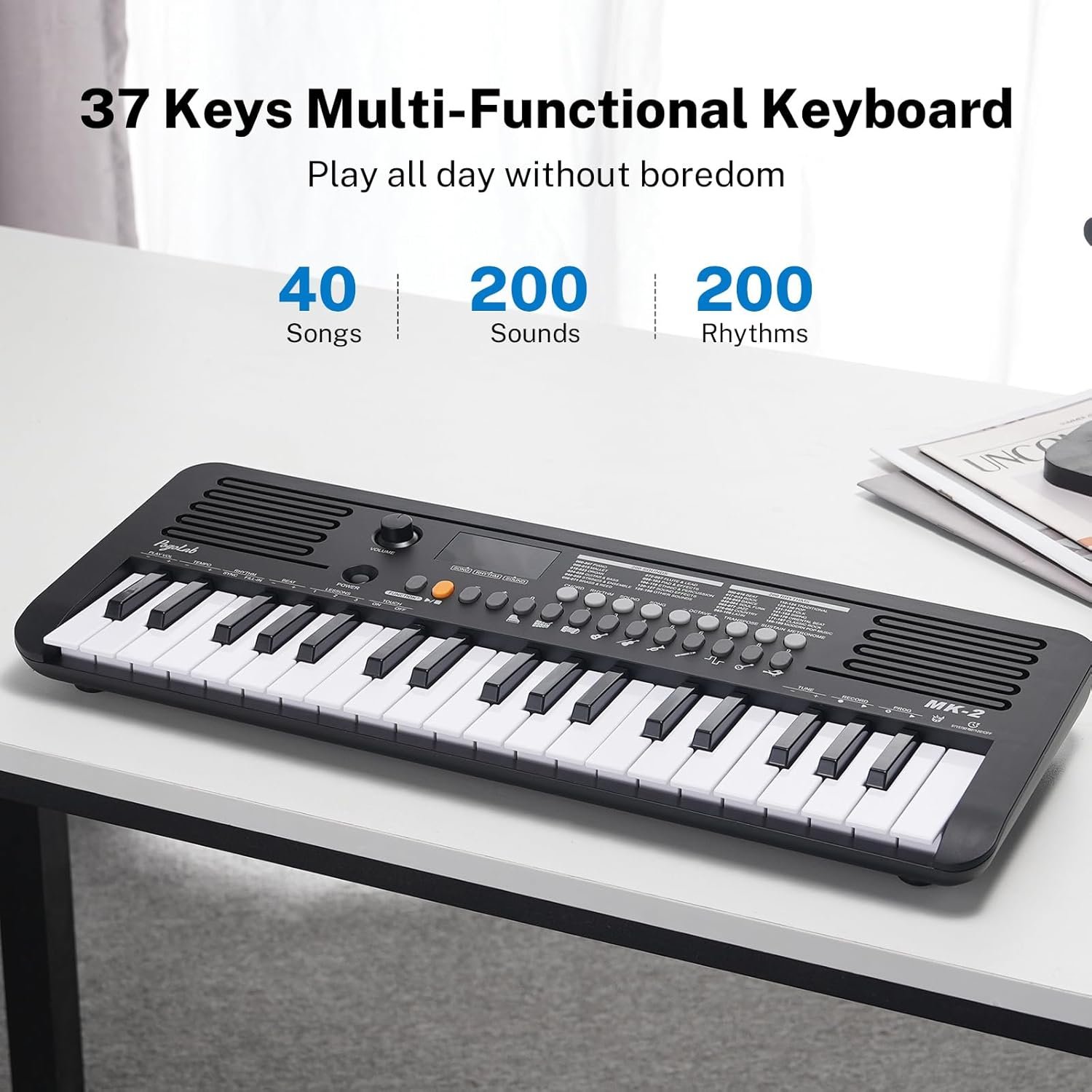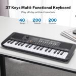 MK-2 37 Keys Kids Keyboard Piano, Portable Small Keyboard with 40 Songs, 200 Sounds, with MIDI Function, LED Display & Dual Speakers, Compact Mini Music Piano for Kids/Beginners (Black)
