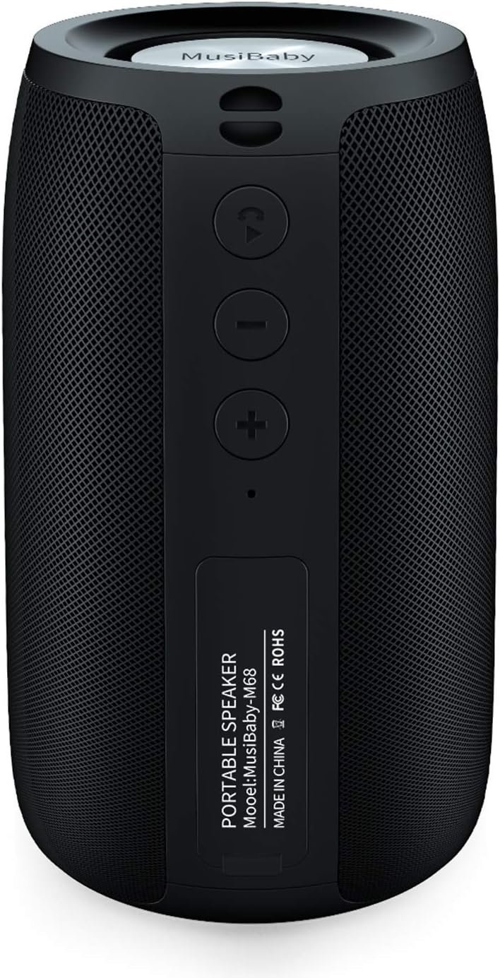 MusiBaby M68 Portable Bluetooth Speakers – Wireless, Waterproof, Dual Pairing, Deep Bass, Small & Loud with 24H+ Playtime – Outdoor Travel, Beach, Camping, Party, Gifts for Men Women (Black)