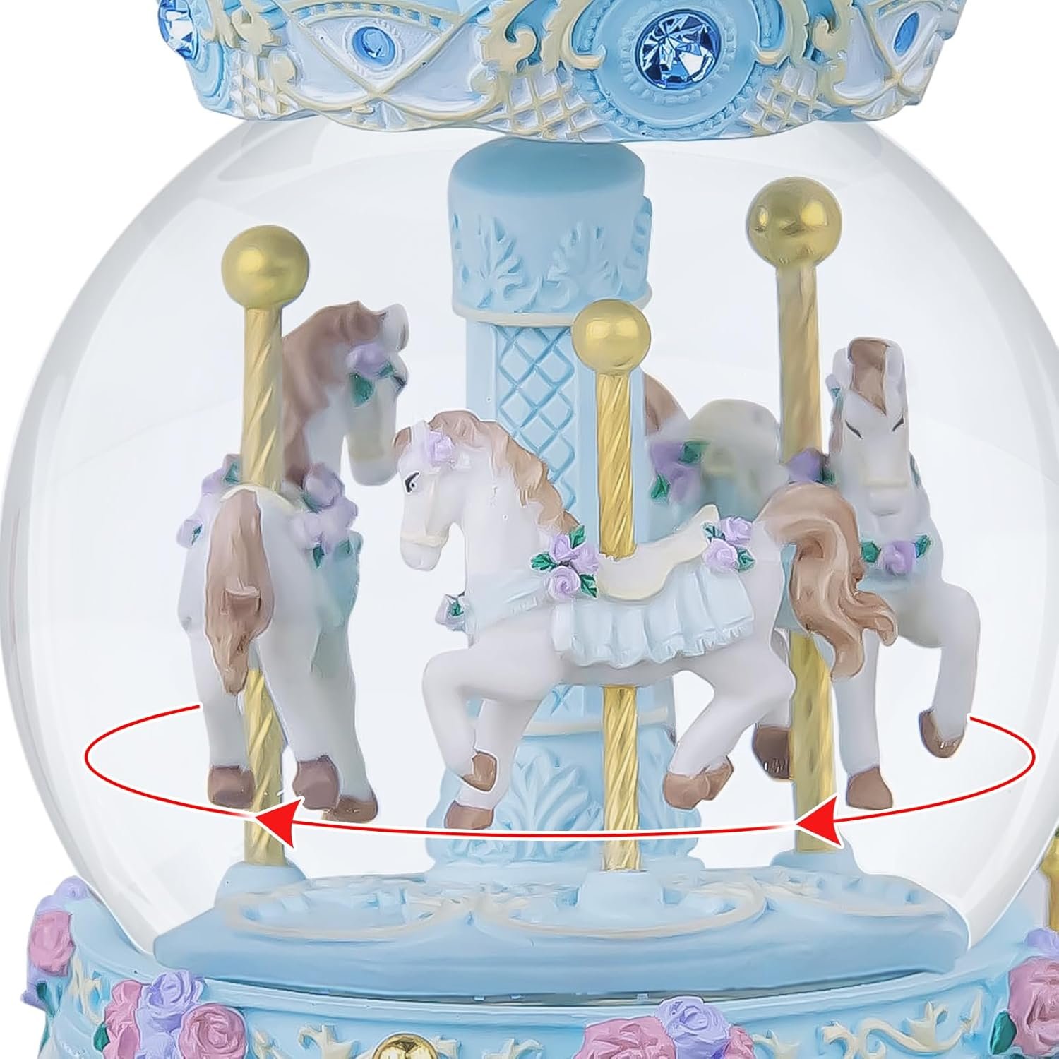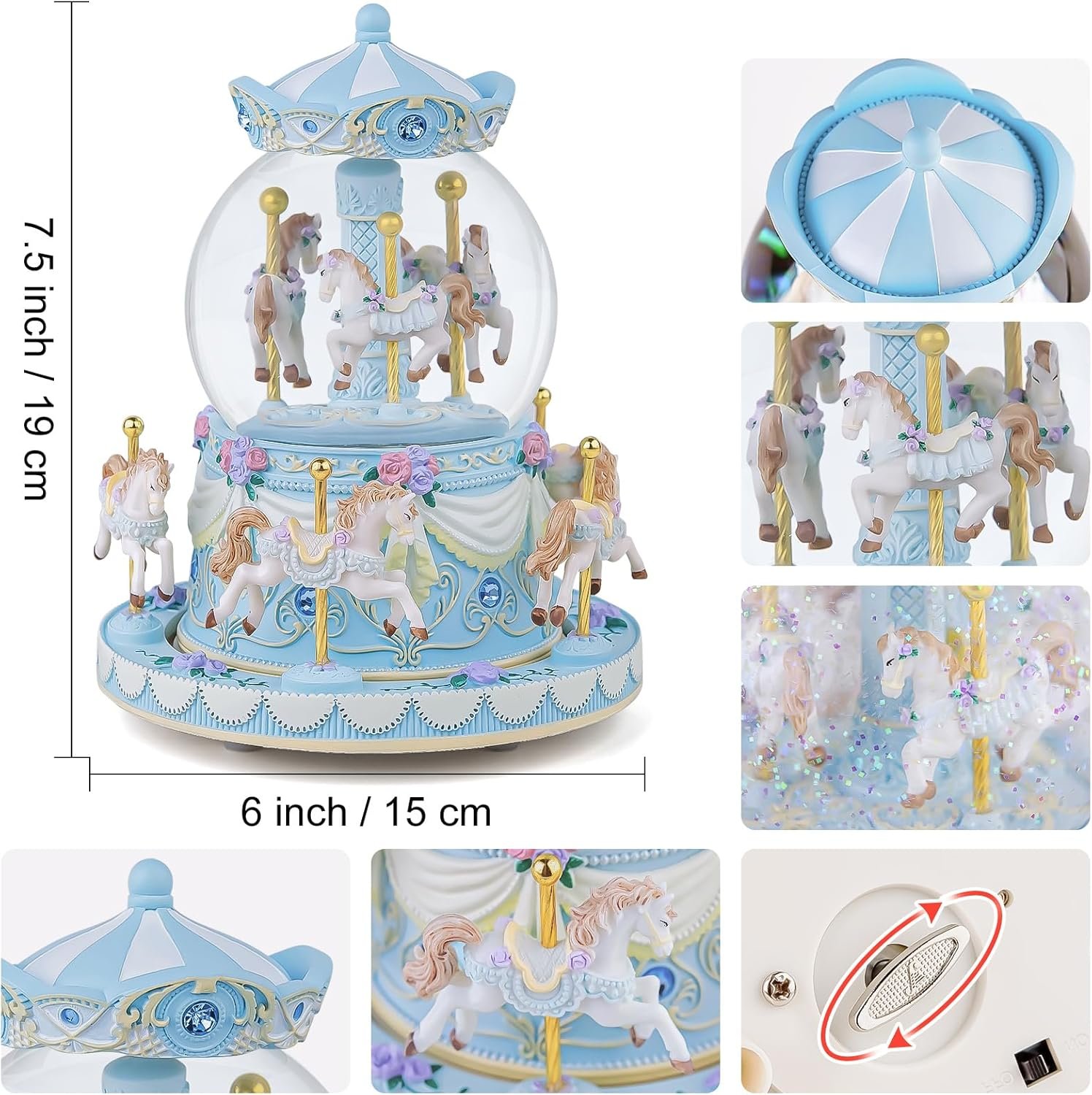 Music Box Carousel Snow Globe, Anniversary Christmas Birthday Gifts for Girls Mom Friend Daughter, Unicorn Music Boxes Carousel Horse with Lights Play You are My Sunshine
