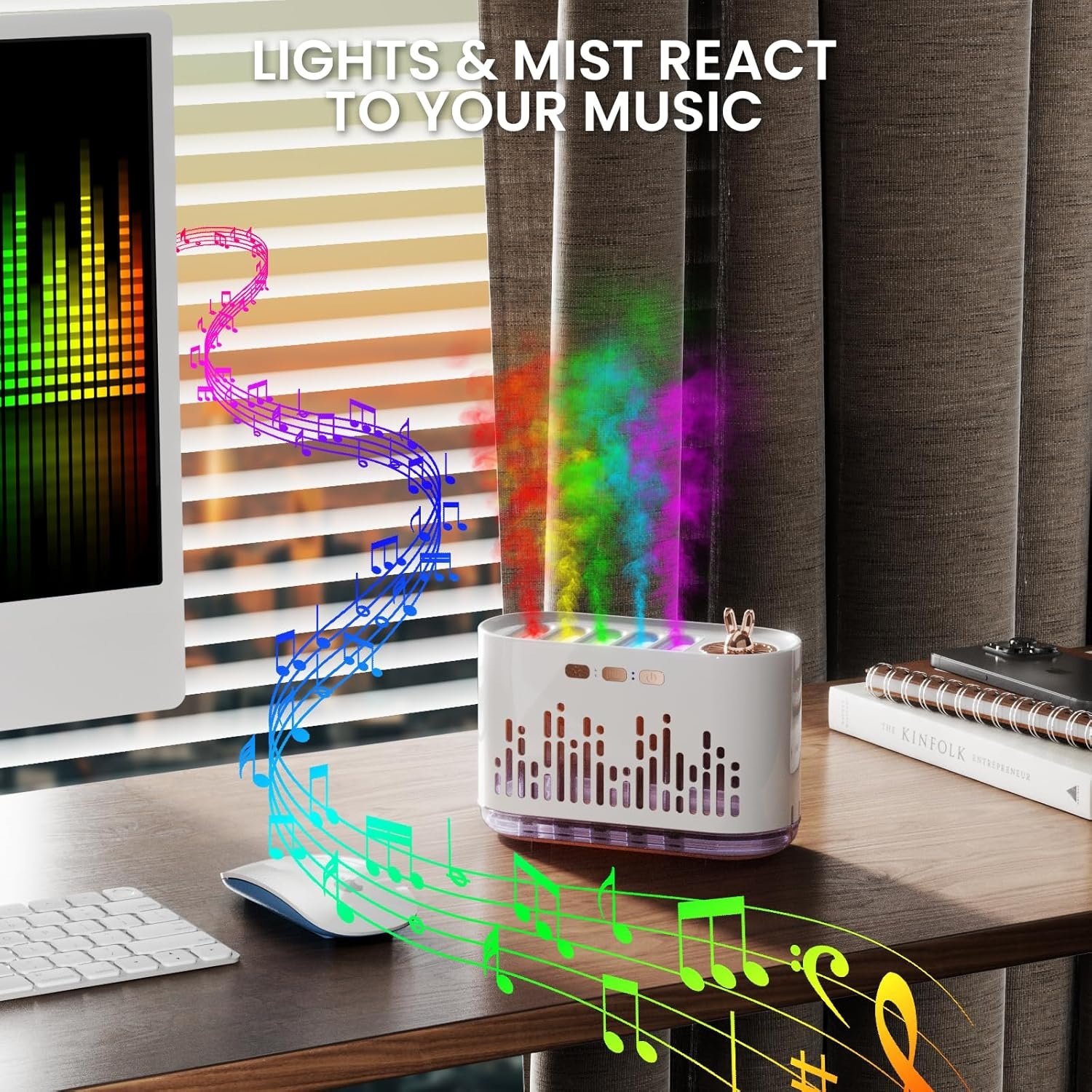 Music-Sensing Humidifier Diffuser with Color Flame & Sound Mist 700ml Aromatherapy Essential Oil 7-Color LED Auto Shut-Off 6H Timer for Bedroom Home Office
