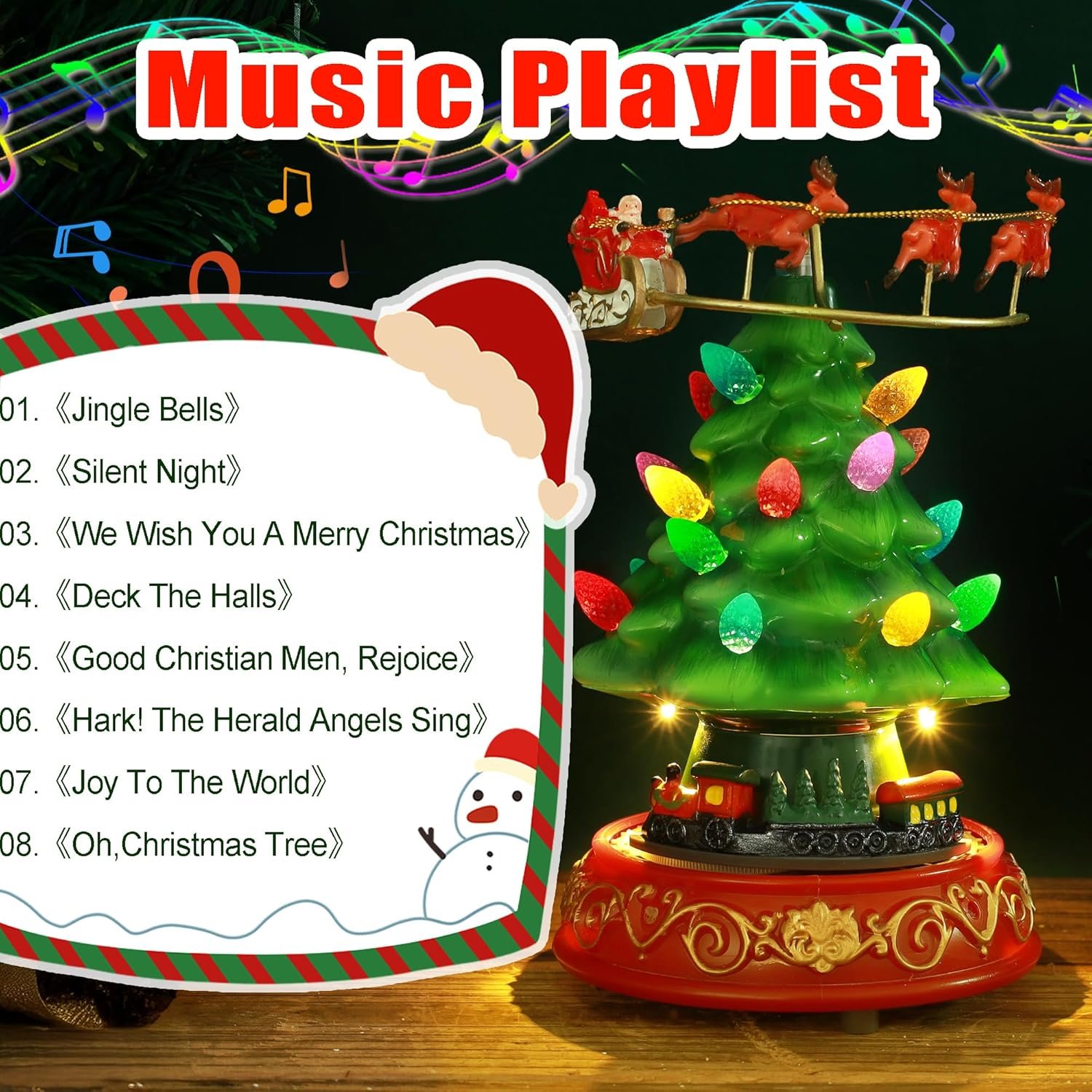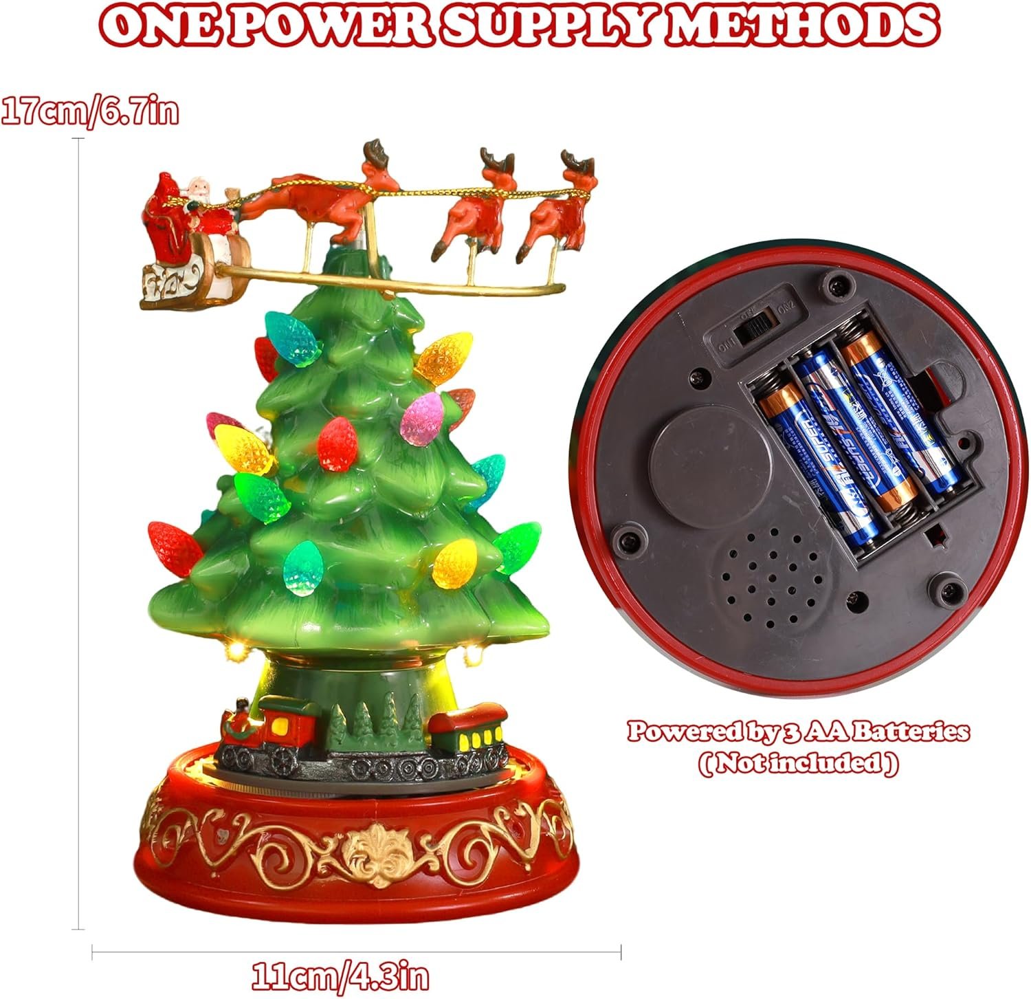 Musical Pre-Lit Artificial Christmas Tree Plastic Figurines with Spinning Train & Elk , Collectibles Statues Architectural Decor , Battery Xmas Holiday Indoor Tabletop Decor Ornaments Centerpiece