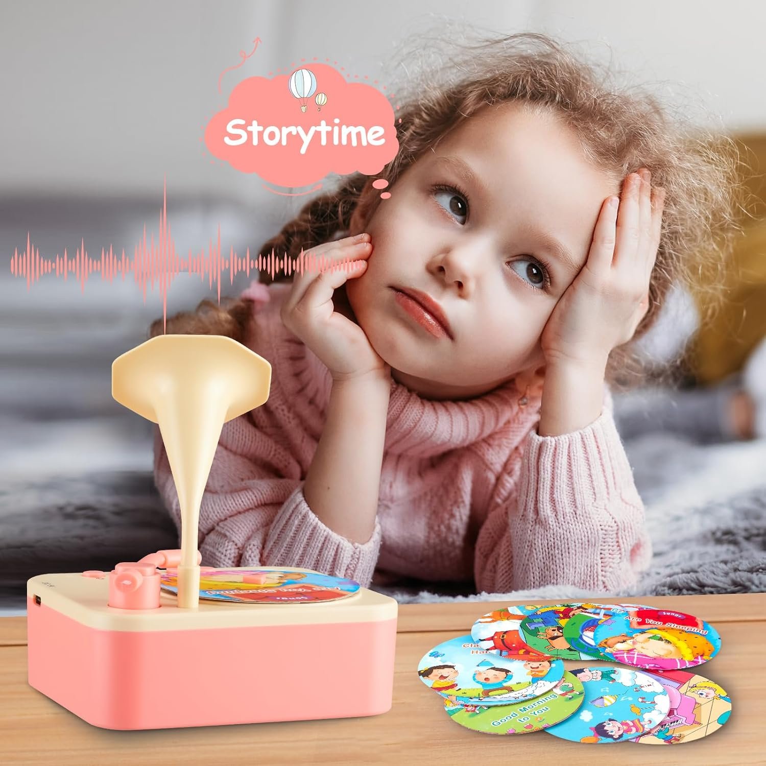 Musical Toys for Toddlers Gramophone 3-6 Kids Learning, 99 Cards Stories Songs, Audiobooks Player for Boys and Girls(Dreamy Pink)