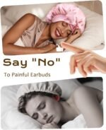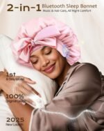 MUSICOZY Bluetooth Sleep Headphones with Satin Cap – Wireless Bedtime Headset with Ultra-Thin Speakers, Music Sleep Device for Side Sleepers & Hair Protection (Pink)