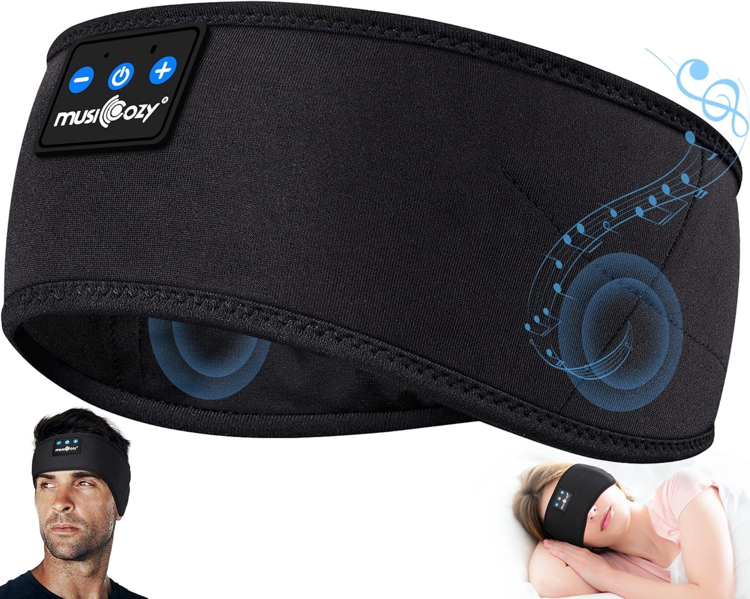 MUSICOZY Sleep Headphones Headband Bluetooth 5.4 Wireless Headband Headphones for Sleeping for Side Sleeper with Ultra-Thin HD Stero Speaker for Workout(L Size)