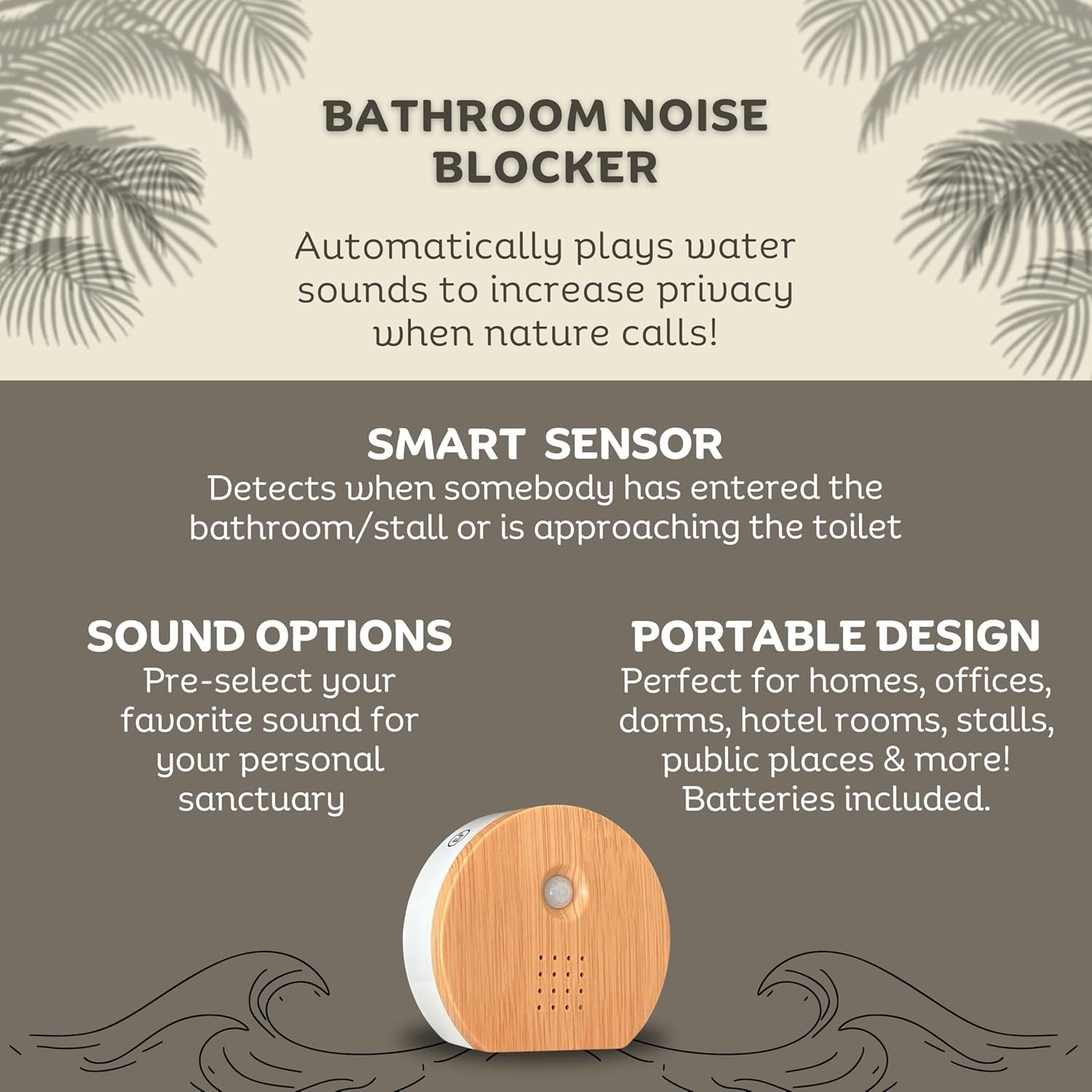 NERRA Bathroom Noise Blocker, Automatically Plays Relaxing Water Sounds for Bathroom Privacy, Blocks Toilet Sounds, Portable