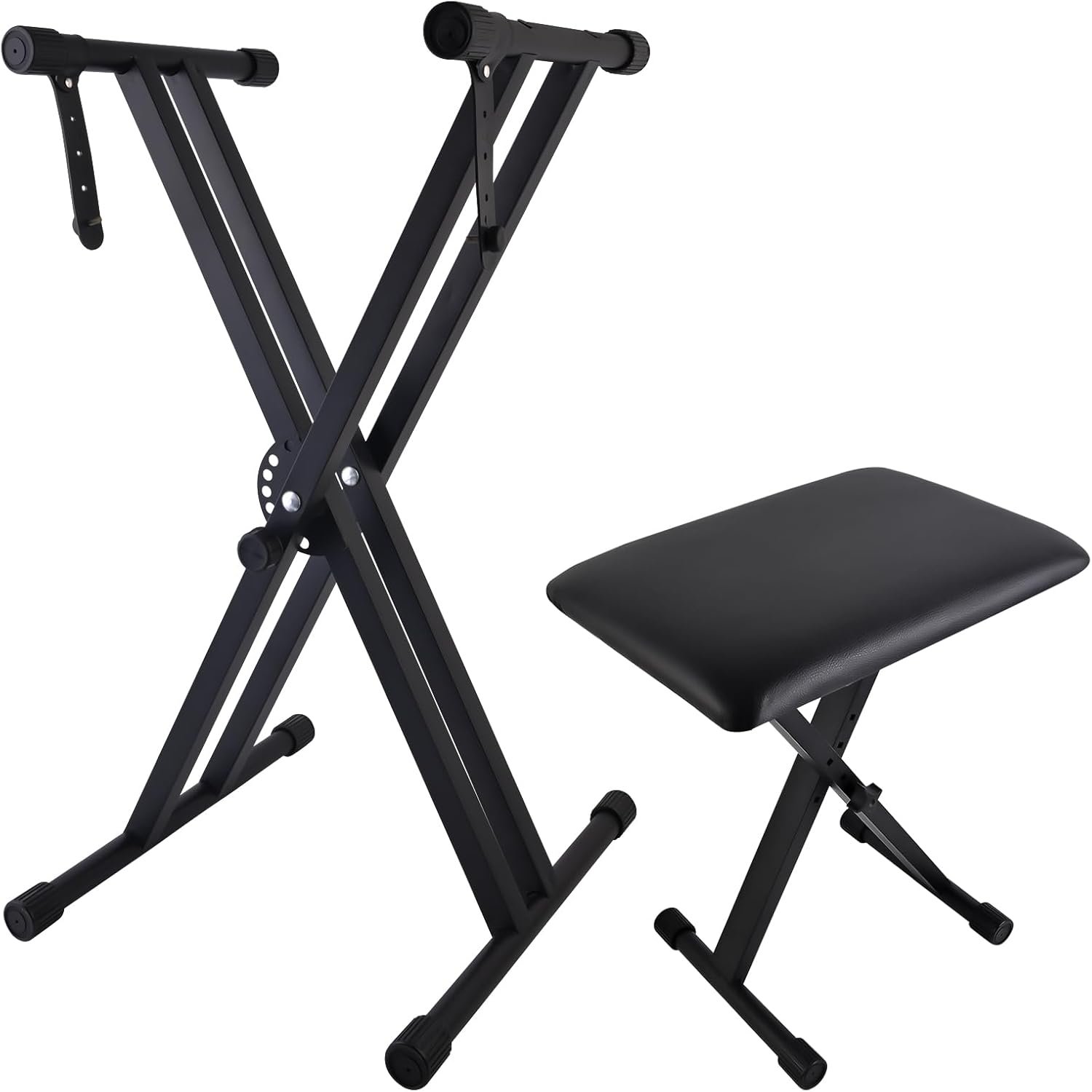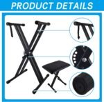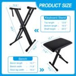 Piano Keyboard Stand and Bench Set, Double-X Keyboard Stand Adjustable Digital Piano Stand with Lockable Straps, (Piano Keyboard Stand x 1, Piano Bench x 1), Black