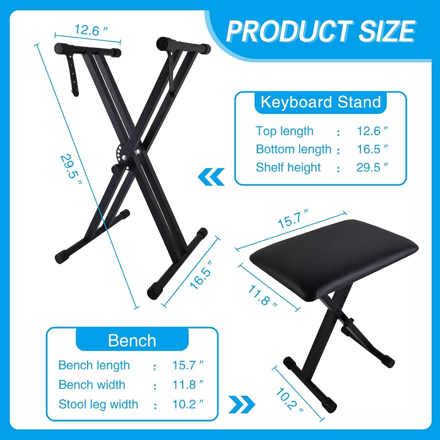 Be the first to review “Piano Keyboard Stand and Bench Set, Double-X Keyboard Stand Adjustable Digital Piano Stand with Lockable Straps, (Piano Keyboard Stand x 1, Piano Bench x 1), Black”