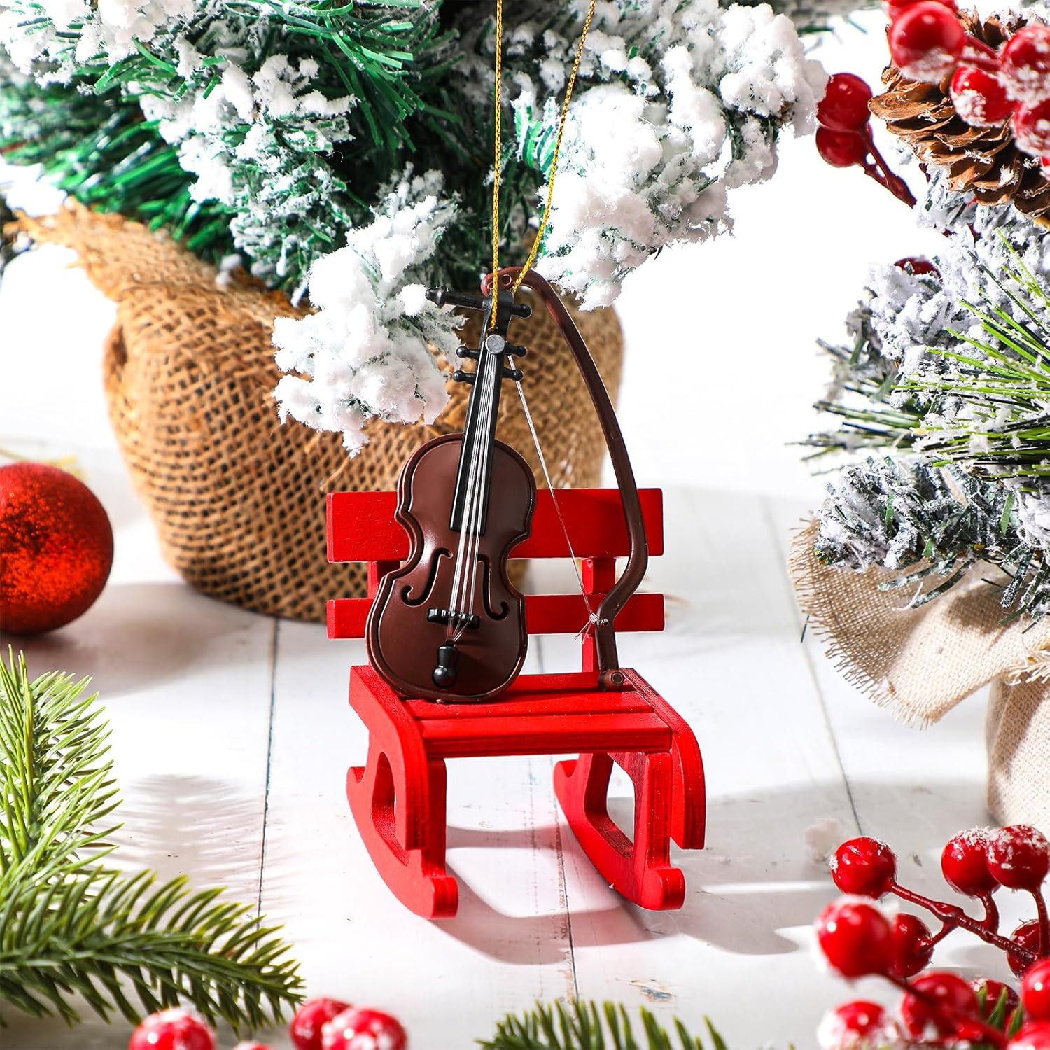 Poen 1 Pc Christmas Mini Violin Ornaments Small Violin Christmas Hanging Ornament Tiny Musical Instrument Decorations Music Lovers Gifts for Holiday Teacher Coworkers Party Xmas Tree Home Decor