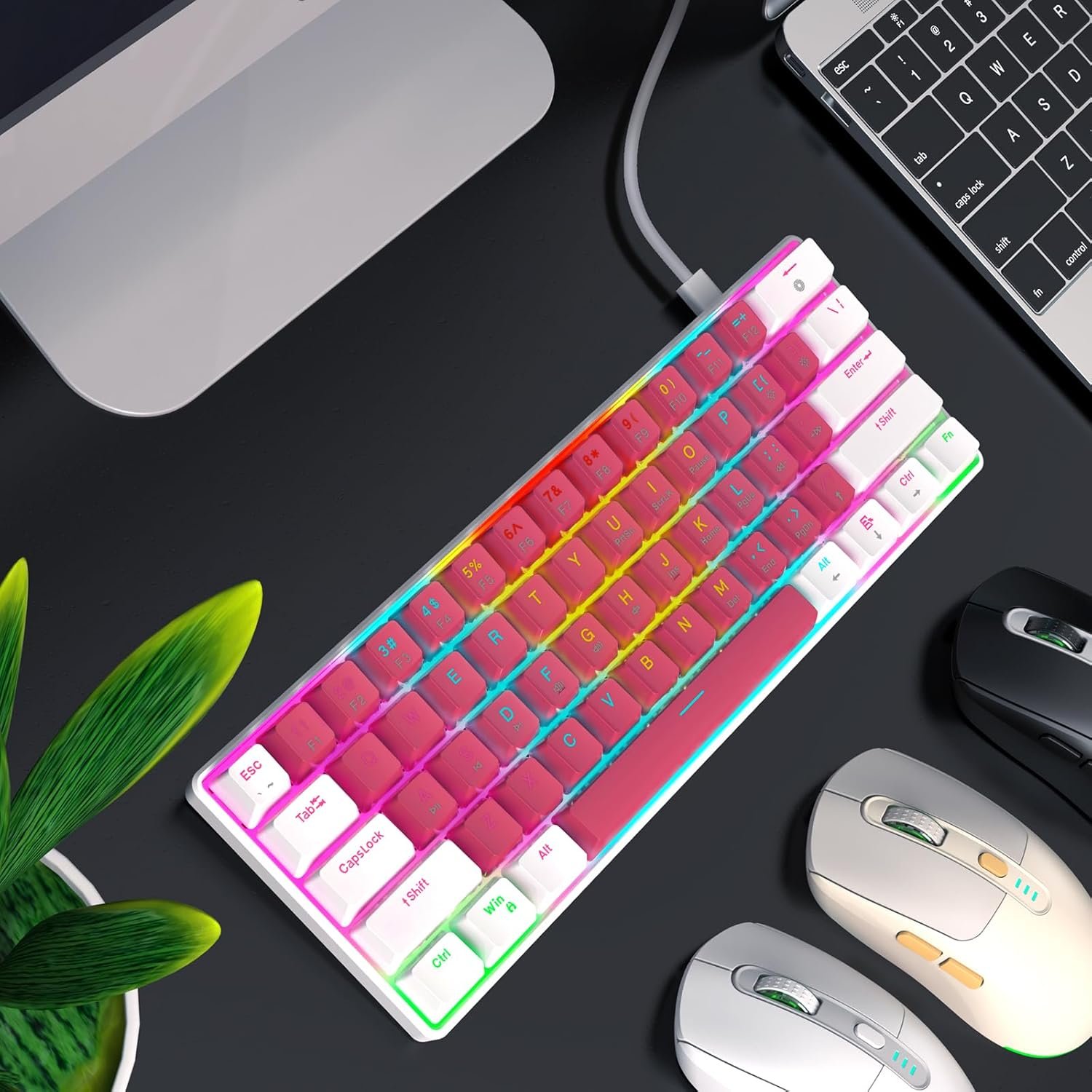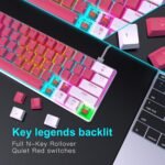 Portable 60% Mechanical Gaming Keyboard, Compact 61 Keys Mini USB-C Computer Keyboard Red Switch for Windows PC Laptop – Whiter/Red
