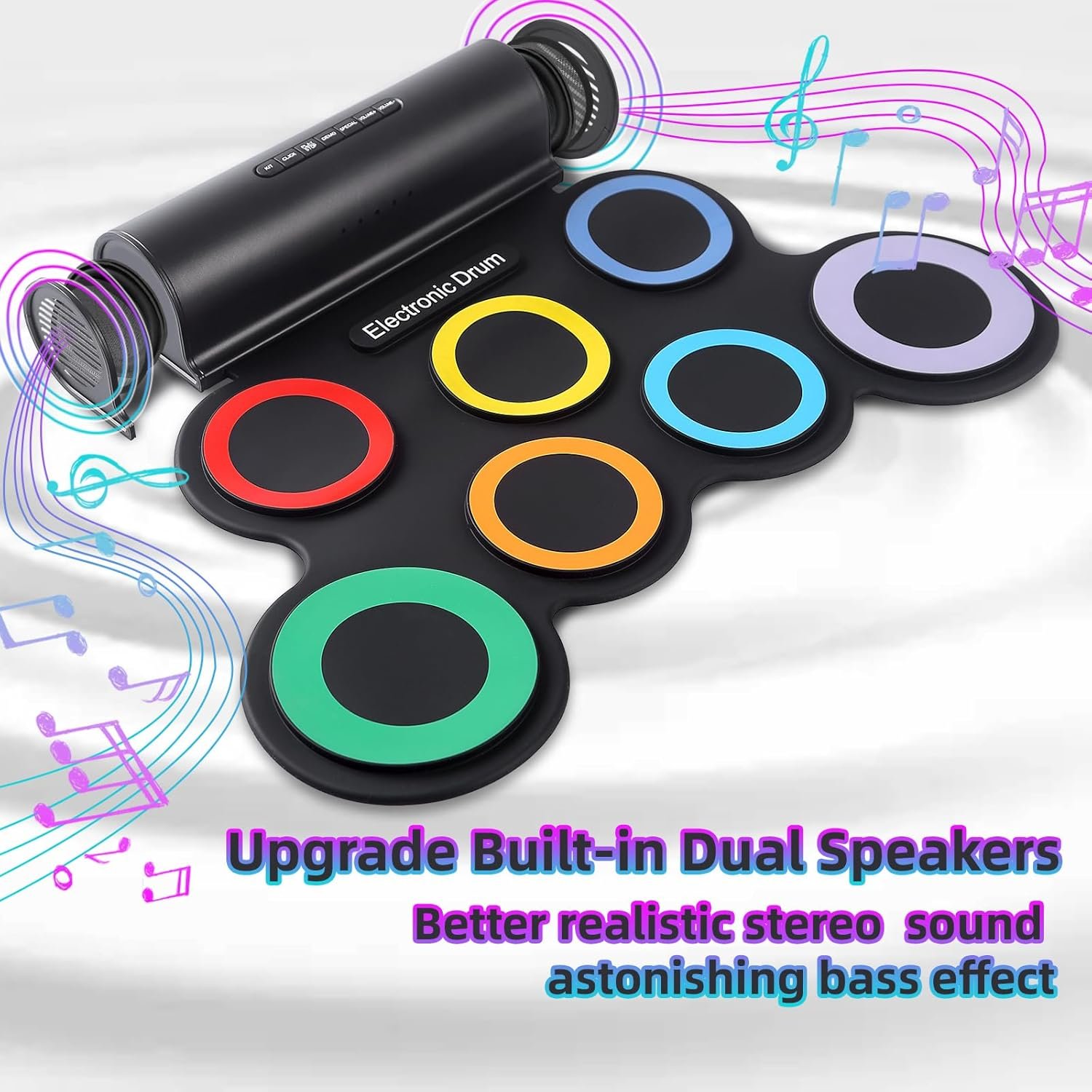 Portable Electronic Drum Set 7-Pads: Roll-Up Electric Drum Kit for Beginners & Hobbyists–MIDI Drum Pad with Headphones,Dual Speakers & Pedals–10H Playtime–Great Practice Tool for Home & Travel