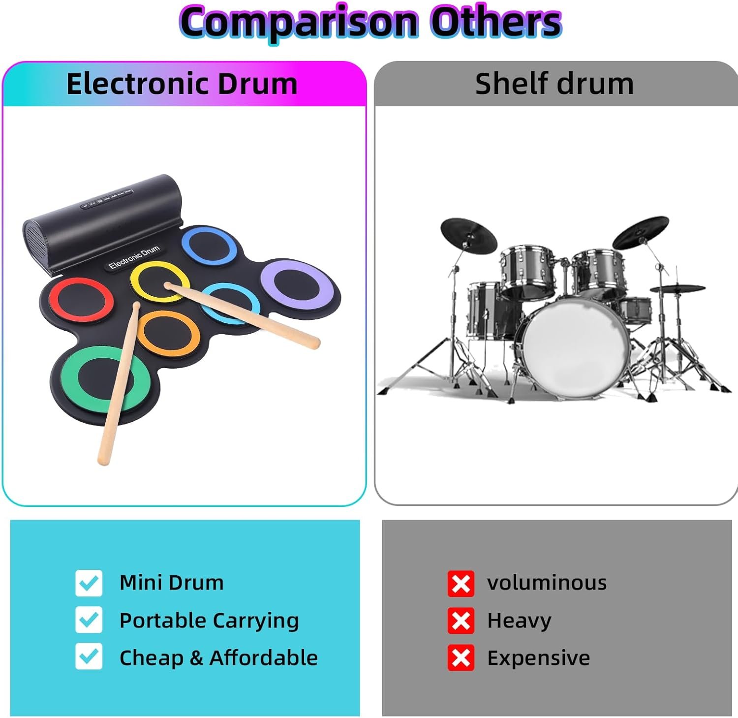 Tags: 7Pads, acoustic drums, Beginners, Drum, drum pads, drum sticks, Electric, Electronic, electronic drum set, HeadphonesDual, HobbyistsMIDI, Home, Kit, Pad, Pedals10H, percussion instruments, PlaytimeGreat, Portable, Practice, RollUp, Set, Speakers, Tool, Travel