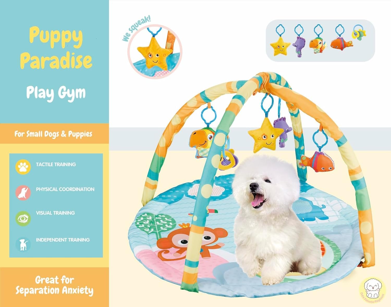 Puppy Play Gym – Dog & Cat Activity Mat with Squeaky Toys – Interactive Sensory Mat for Pets (Suitable for Dogs & Cats Up to 25 lbs)