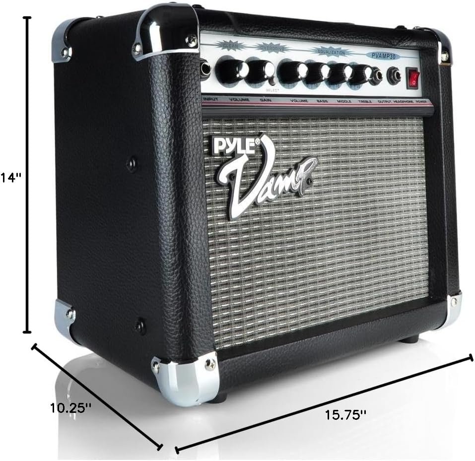 Pyle 30 Watt VampSeries Amplifier – With 3-Band EQ & Overdrive, Has Clean and Overdrive Channels For a Crunchy, Powerful Sound, 20 Hz to 15 kHz Frequency Response, Black