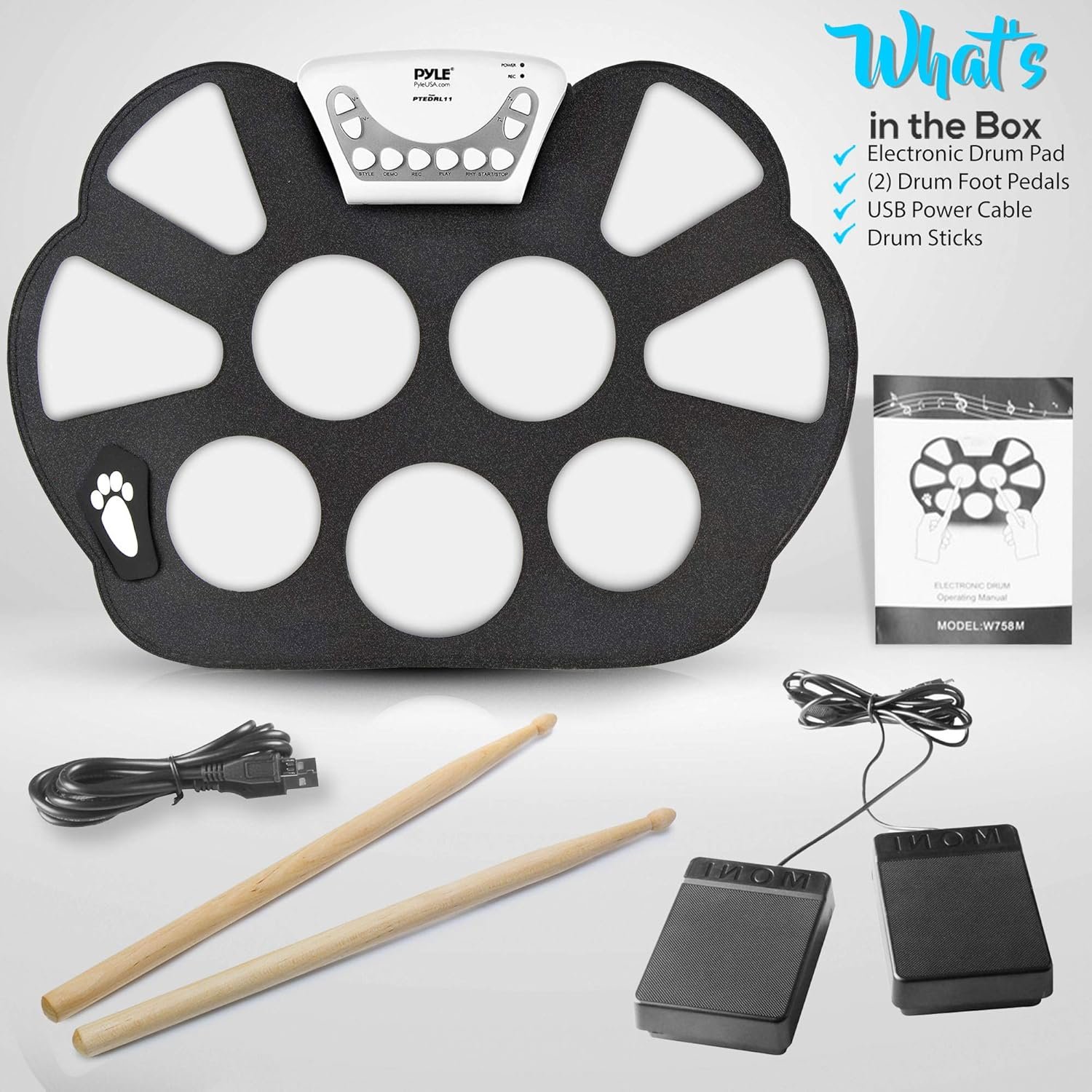 Be the first to review “Pyle Compact & Ultra-Thin Portable Machine w/ 9 Electronic Pads, Foot Pedals, Drumsticks, & Power Supply Tabletop Roll Loaded W/Drum Electric Kits & Songs, Headphone Jack” Cancel reply